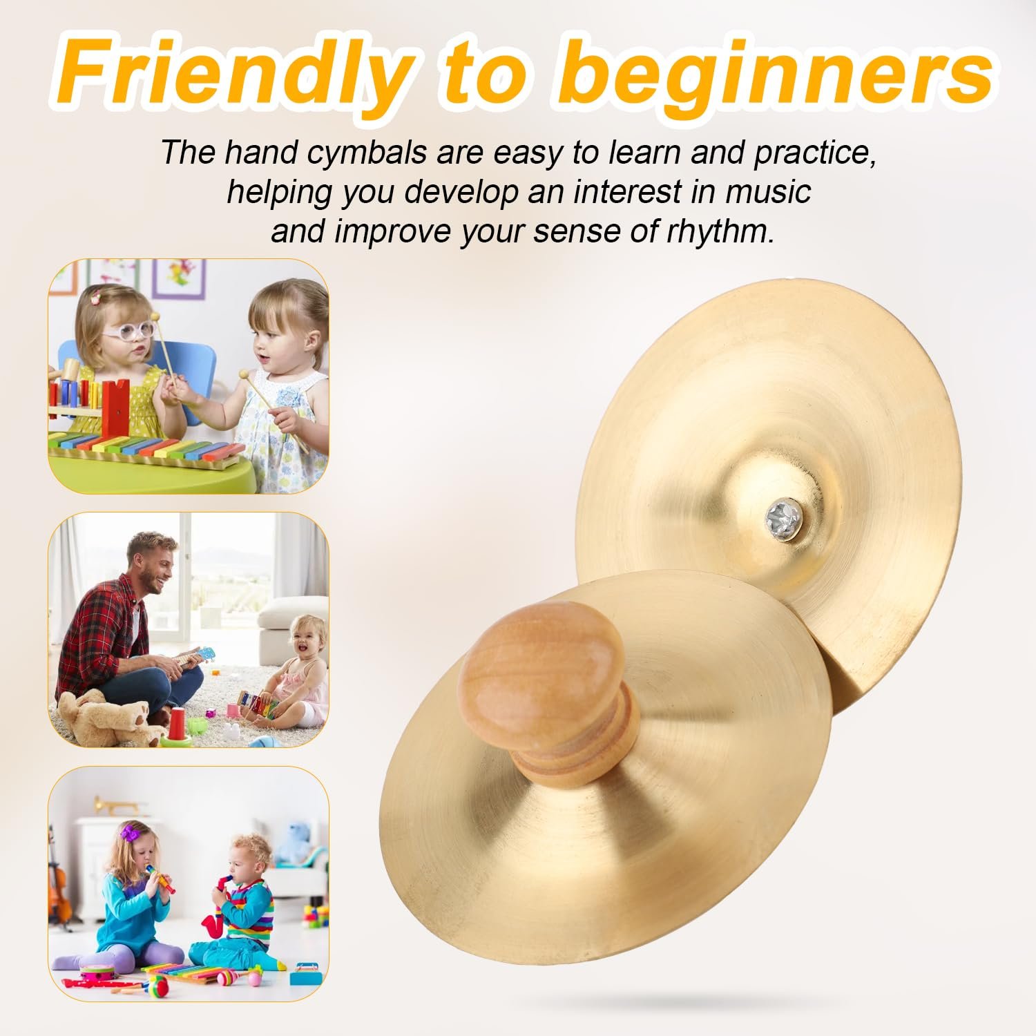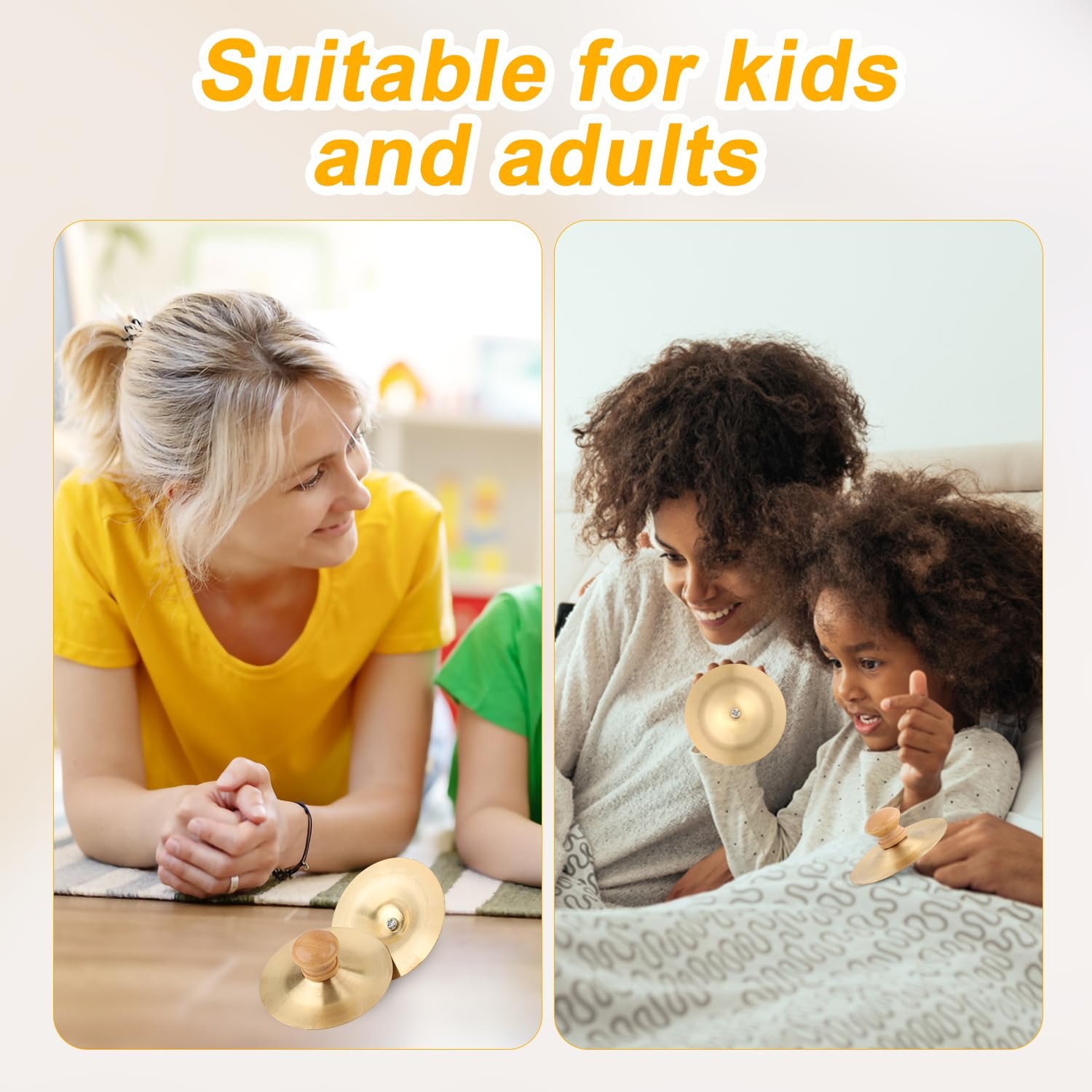 1 Pair 2.76 Inch Finger Cymbals with Wooden Handles, Mini Small Hand Cymbals Portable Small Practice Cymbals Copper Zills Finger Cymbals for Dance Music Drum Performance Party…