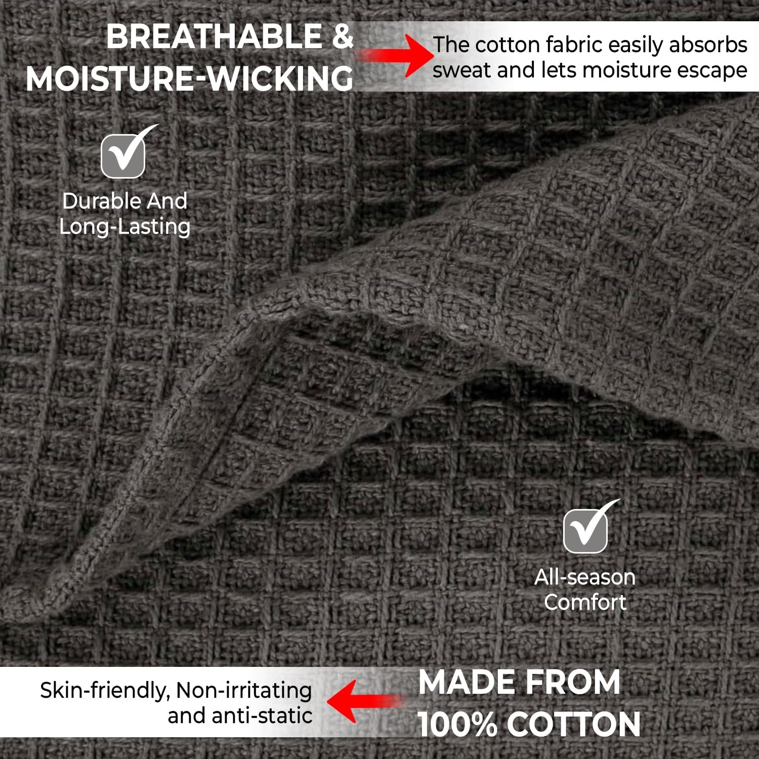 100% Cotton Blankets Queen Size for Bed – Waffle Weave Blankets for Summer, Lightweight and Breathable Soft Woven Blanket for Spring, White, 90×90 Inches (Dark Grey, Queen (90″…