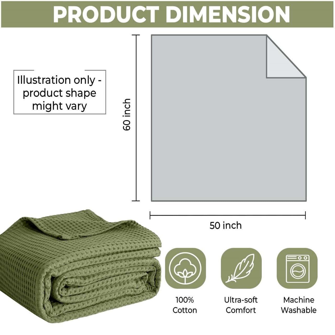 25 reviews for 100% Cotton Blankets Throw Size for Bed – Waffle Weave Blankets for Summer, Lightweight and Breathable Soft Woven Blanket for Spring, Olive Green, Throw (50″ x 60″)