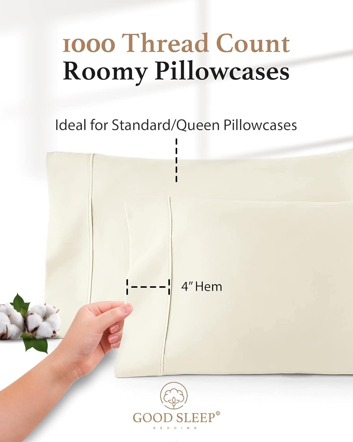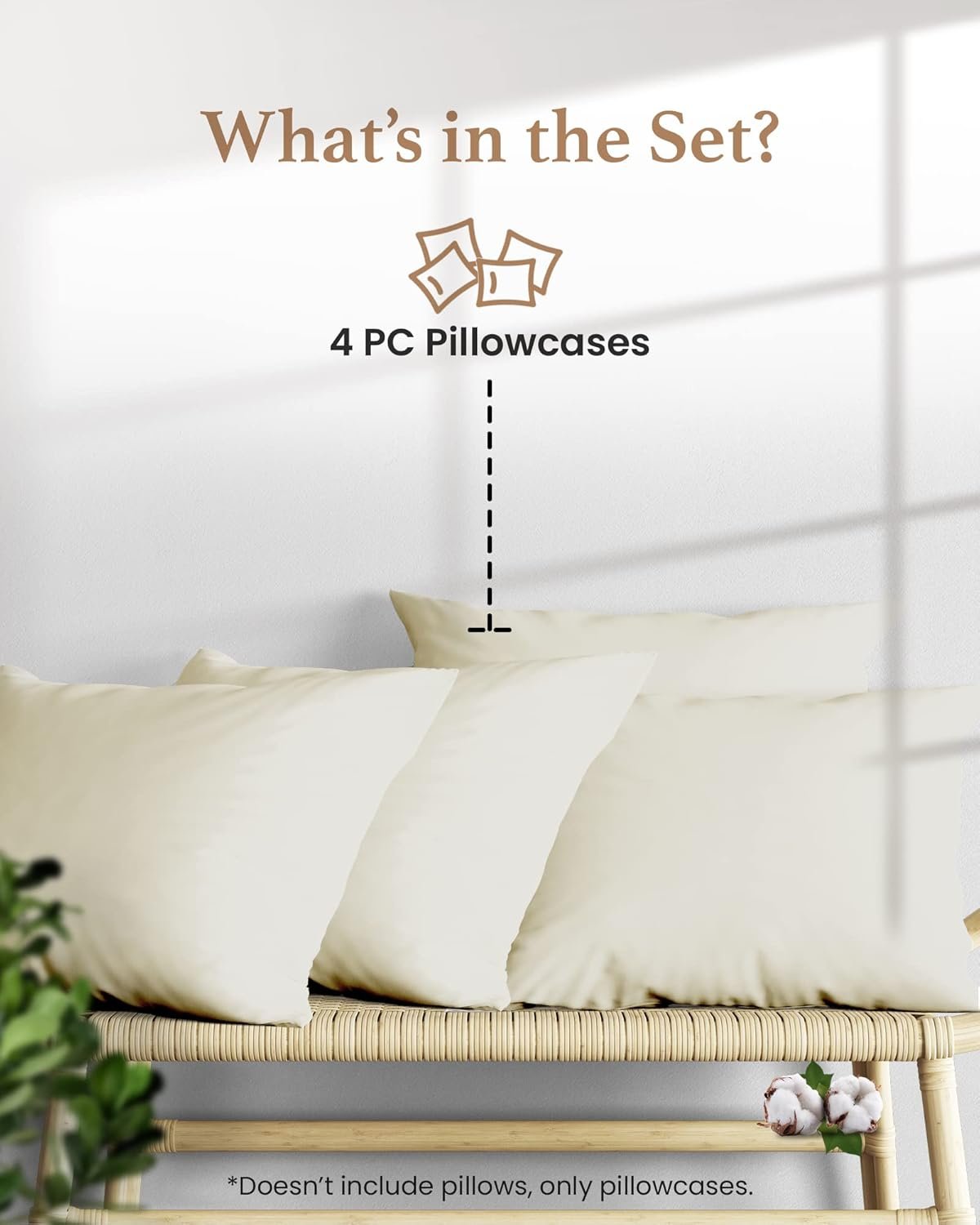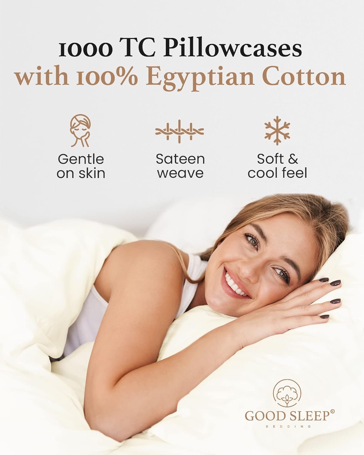 1000 TC Ivory Standard Pillowcases Set of 4 100% Egyptian Cotton Pillow Cases with Long Staple Cotton & Sateen Weave, Silky Soft Hotel – Like Bed Pillow Covers for Comfy…