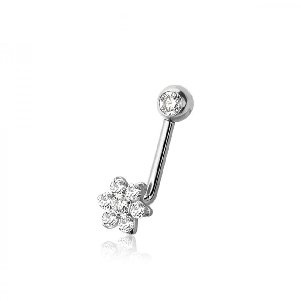- STYLE: Internally Threaded CZ Crystal Flower End VCH Piercing L-Bend Barbell