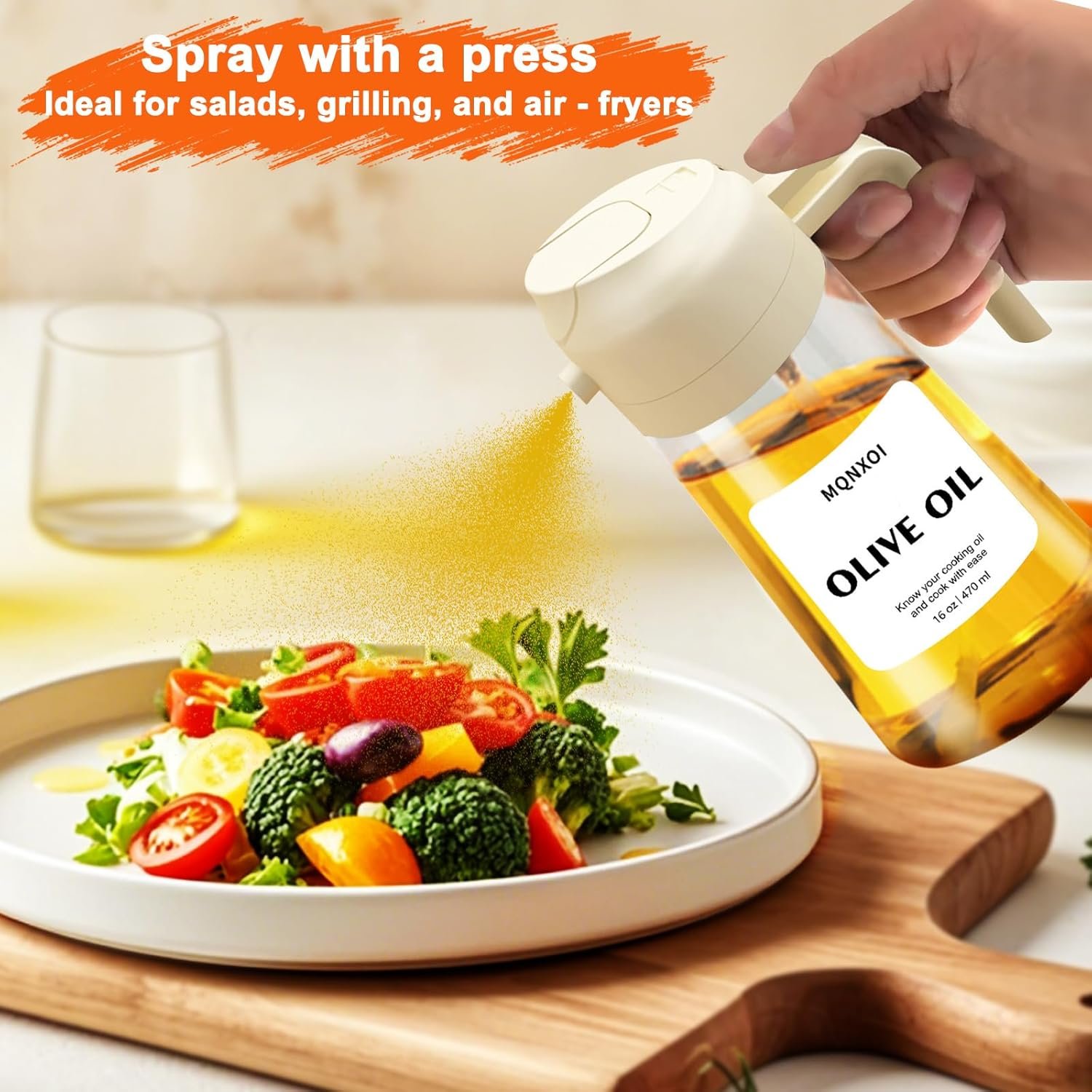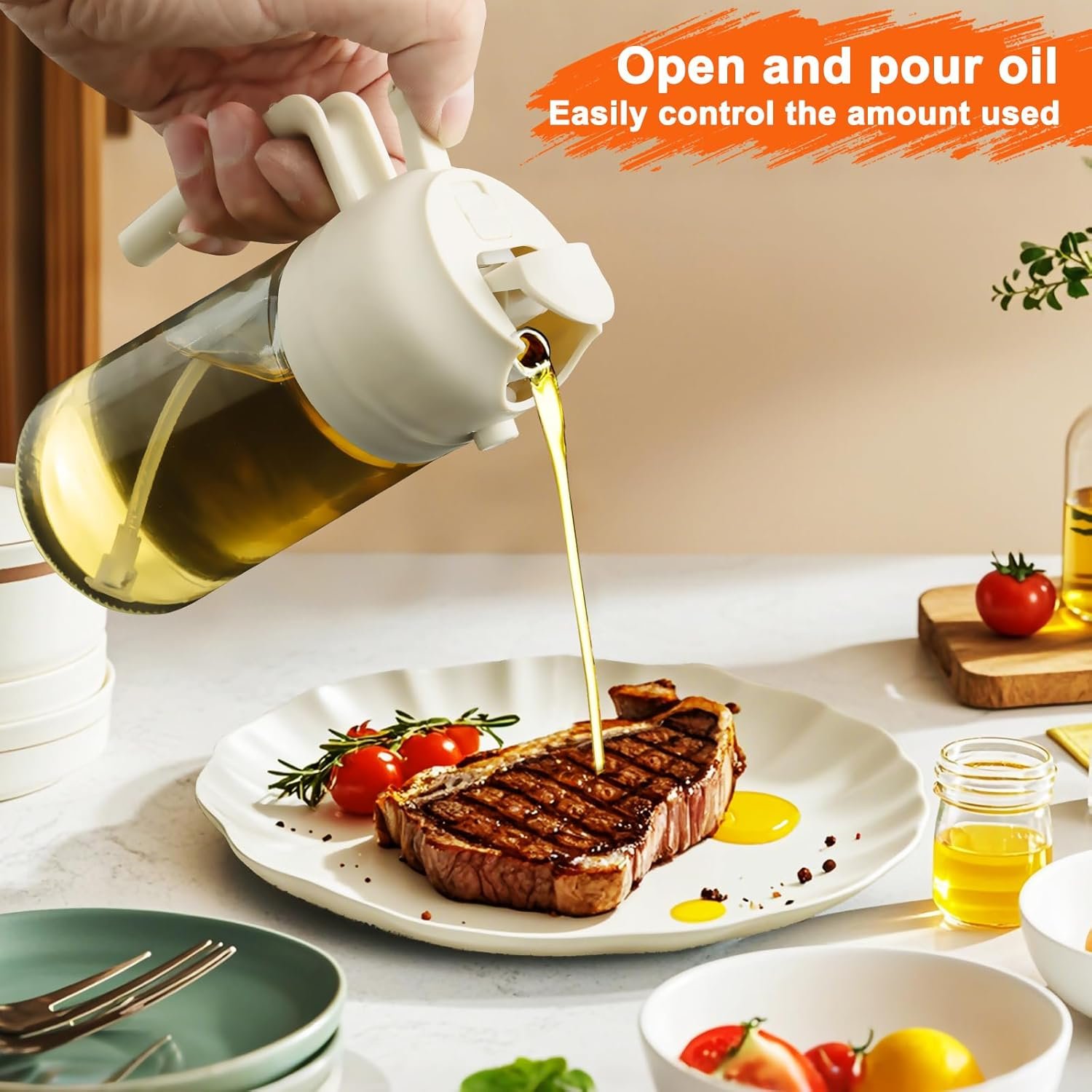- 2 in 1 Oil Dispenser and Sprayer: Experience versatility in your kitchen with our innovative oil dispenser for kitchen, serving as both an olive oil dispenser bottle and oil sprayer for cooking. Seamlessly switch between pouring oil and spraying a fine mist with a simple adjustment, enhancing your culinary experience with ease and efficiency