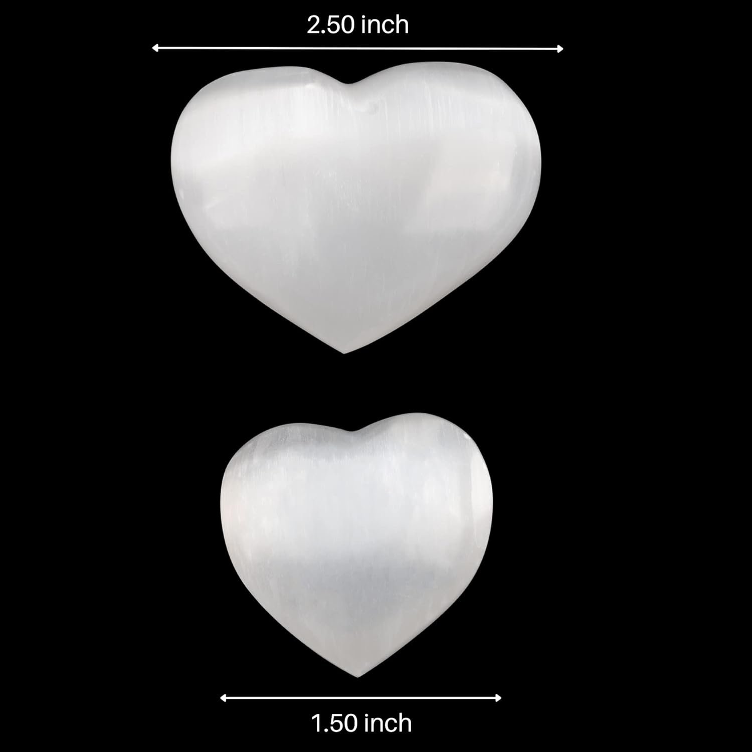 - Beautiful Heart Palm-Sized Stones – Our 2 pc Selenite Heart Stones, with sizes of 2.5″ and 1.5″, are perfect for holding in your hand as palm stones or worry stones for anxiety relief.
