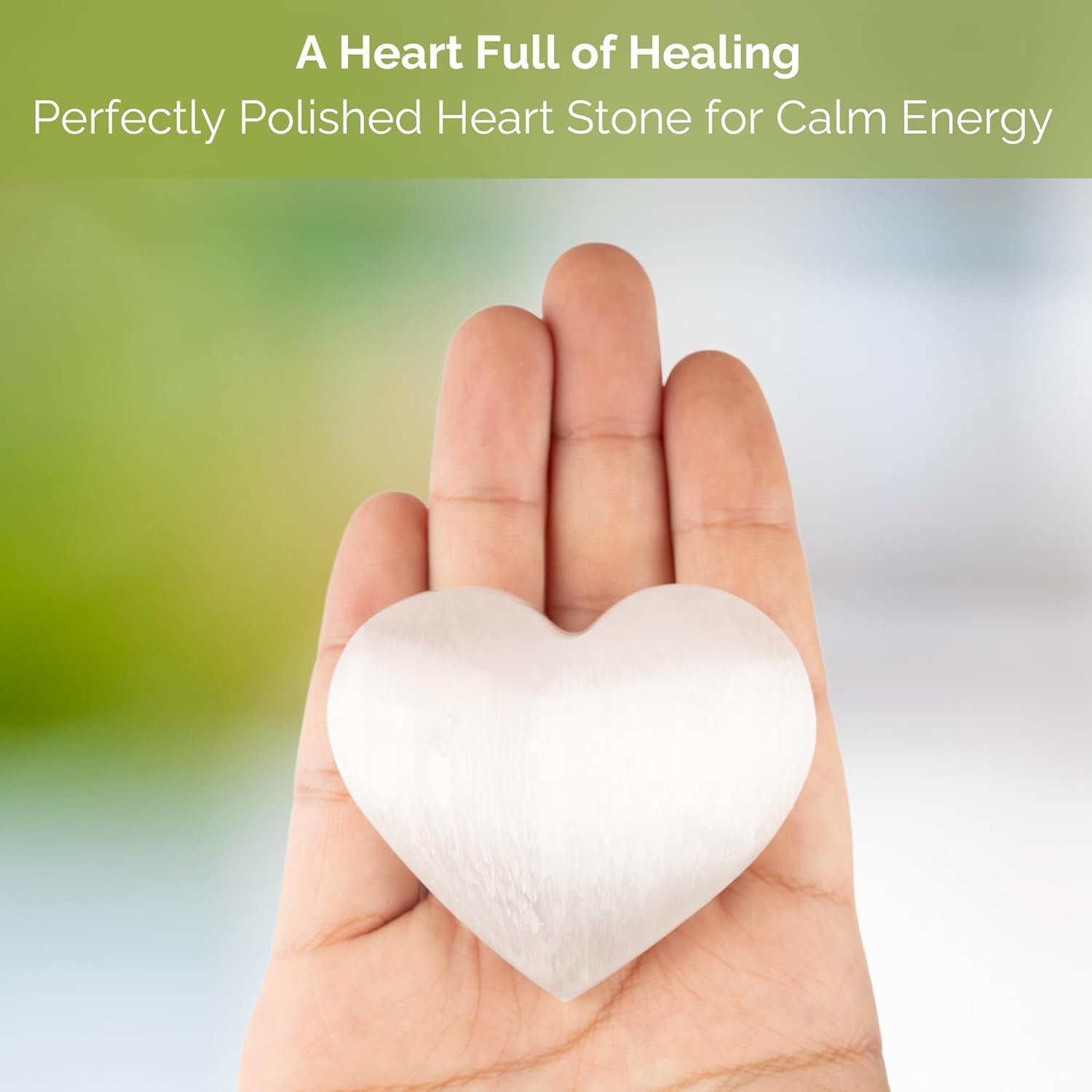 - Powerful Healing Crystals – Our Selenite Heart Palm Stones, made from authentic selenite crystal mined in Morocco, will help reduce anxiety and stress, and enhance your meditation experience.