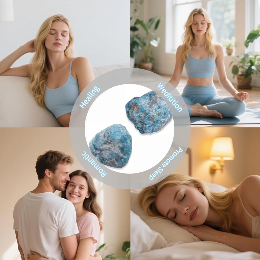 2PCS Natural Raw Stone Healing Crystals Bulk Healing Gemstones for Reiki Tumbling Fountain Rocks Meditation Garden Home Decor (Blue Apatite)