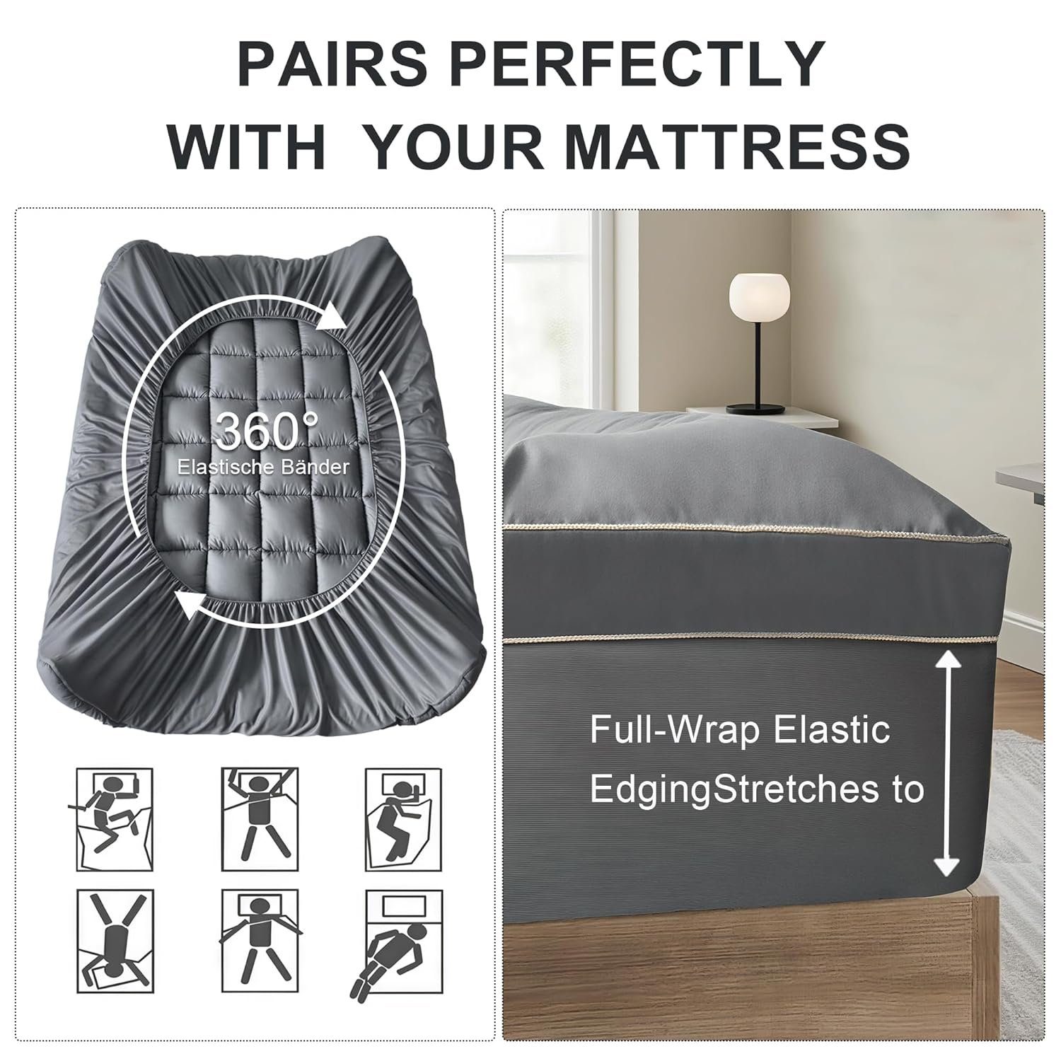 - 【Deep Elastic Pocket 8-21″” Secure Fit】Engineered with super-deep 21″” pockets and 360° elastic edging, our mattress topper securely fits all standard sizes: Twin (39″”x75″”), Full (54″”x75″”), Queen (60″”x80″”), and King (78″”x80″”). The reinforced corners ensure a snug, non-slip fit that stays perfectly in place all night.