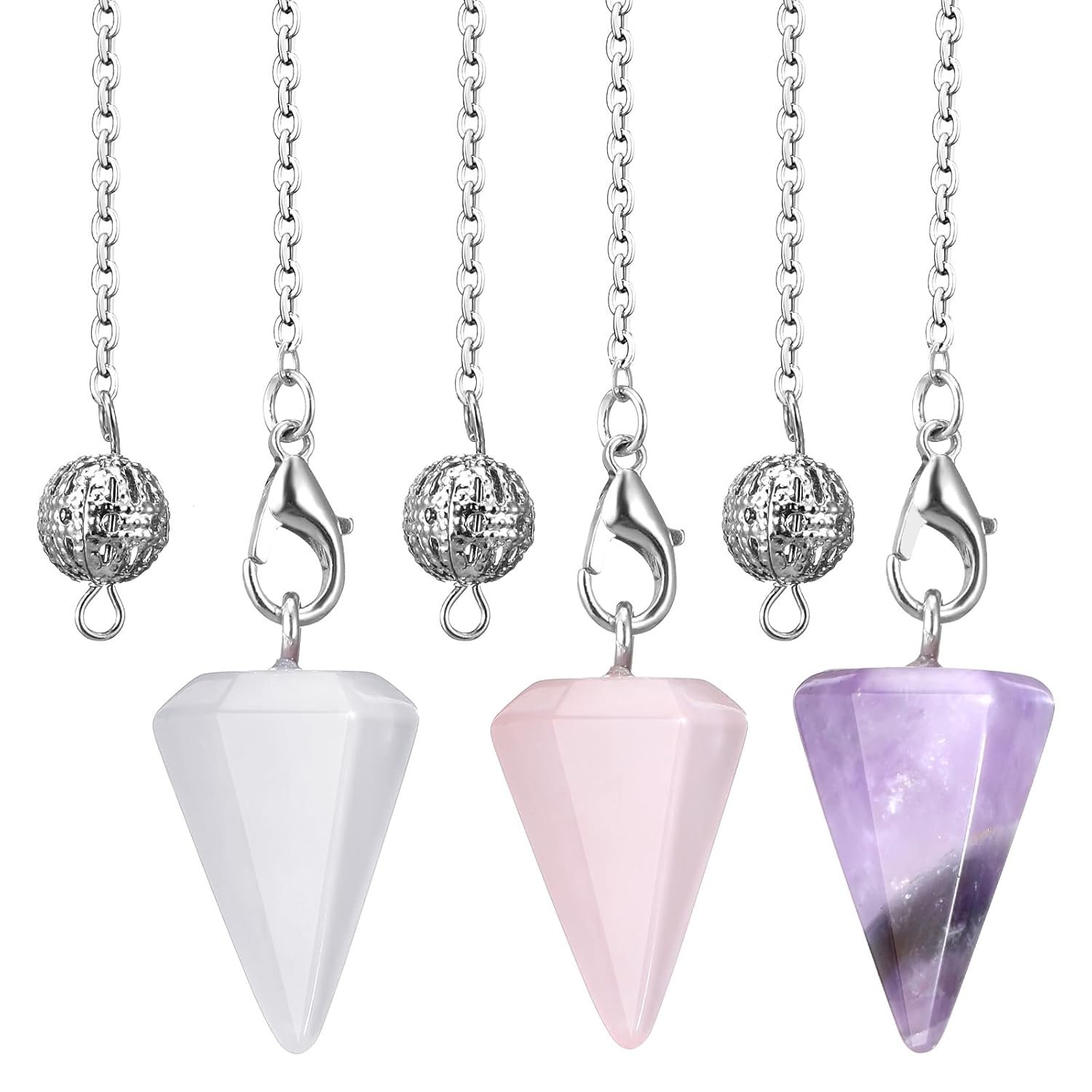 - 【Premium Crystal】The collection includes 3 distinct crystal pendulums (amethyst, rose quartz, and clear quartz). These crystal pendulum tools feature genuine amethyst, rose quartz and clear quartz stones. The pendulum crystal set has precisely cut hexagonal points that enhance energy flow. Each pendulum crystal maintains natural properties for authentic spiritual practice. Wearing witchcraft crystals when you are confused may help you get out of trouble.