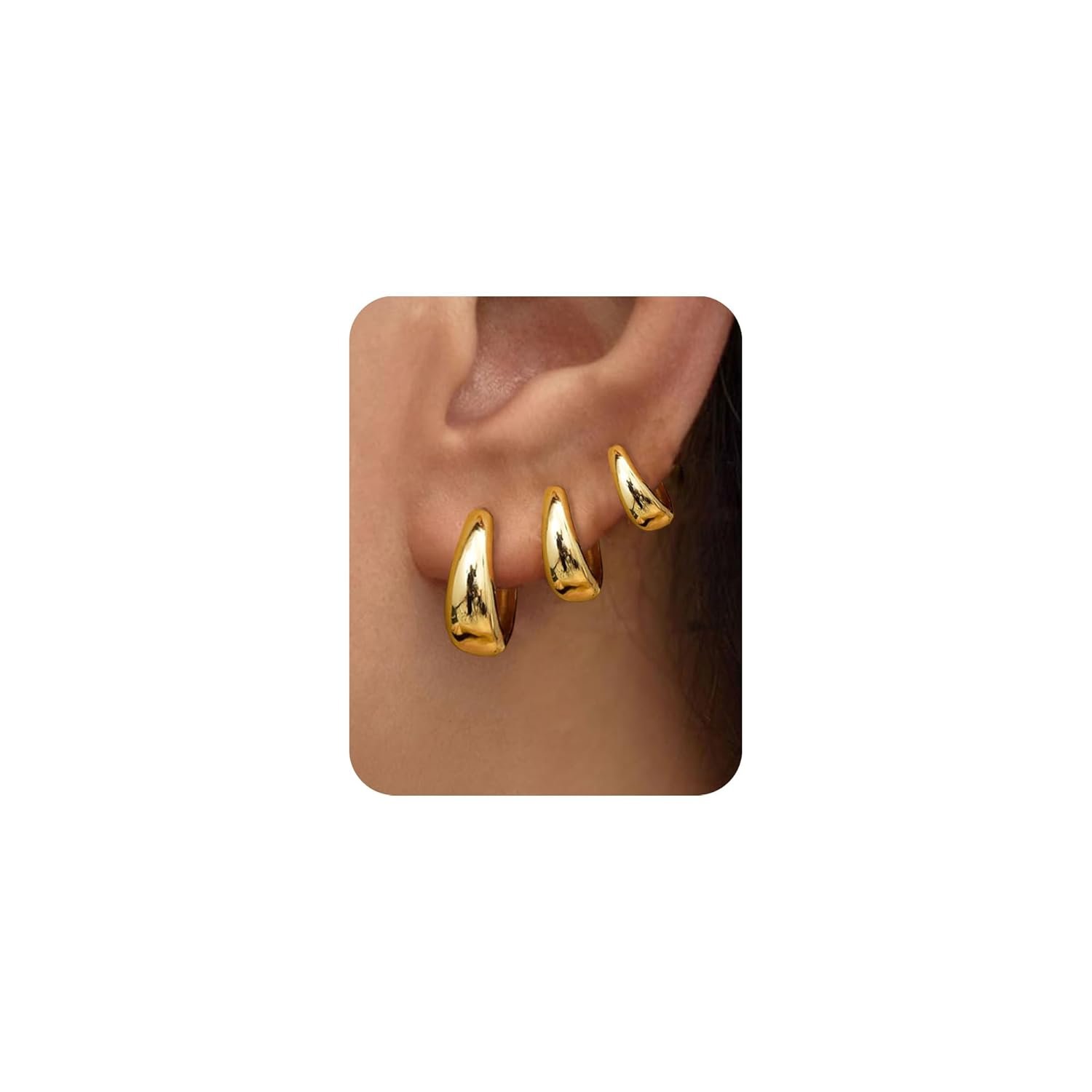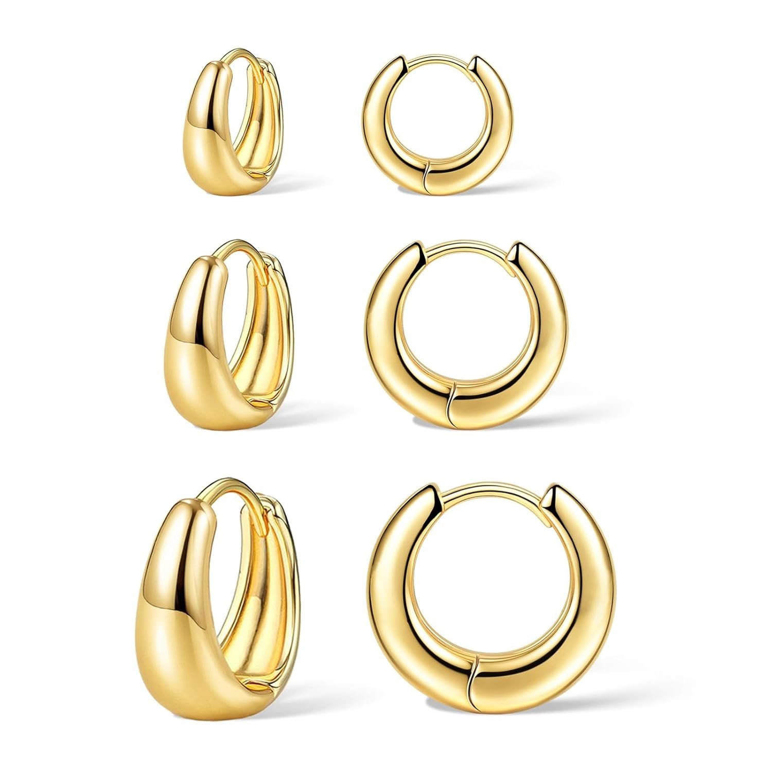 3Pairs Gold Hoop Earrings Set for Women Trendy Chunky Huggie Dainty Earring Jewelry for Women Teens