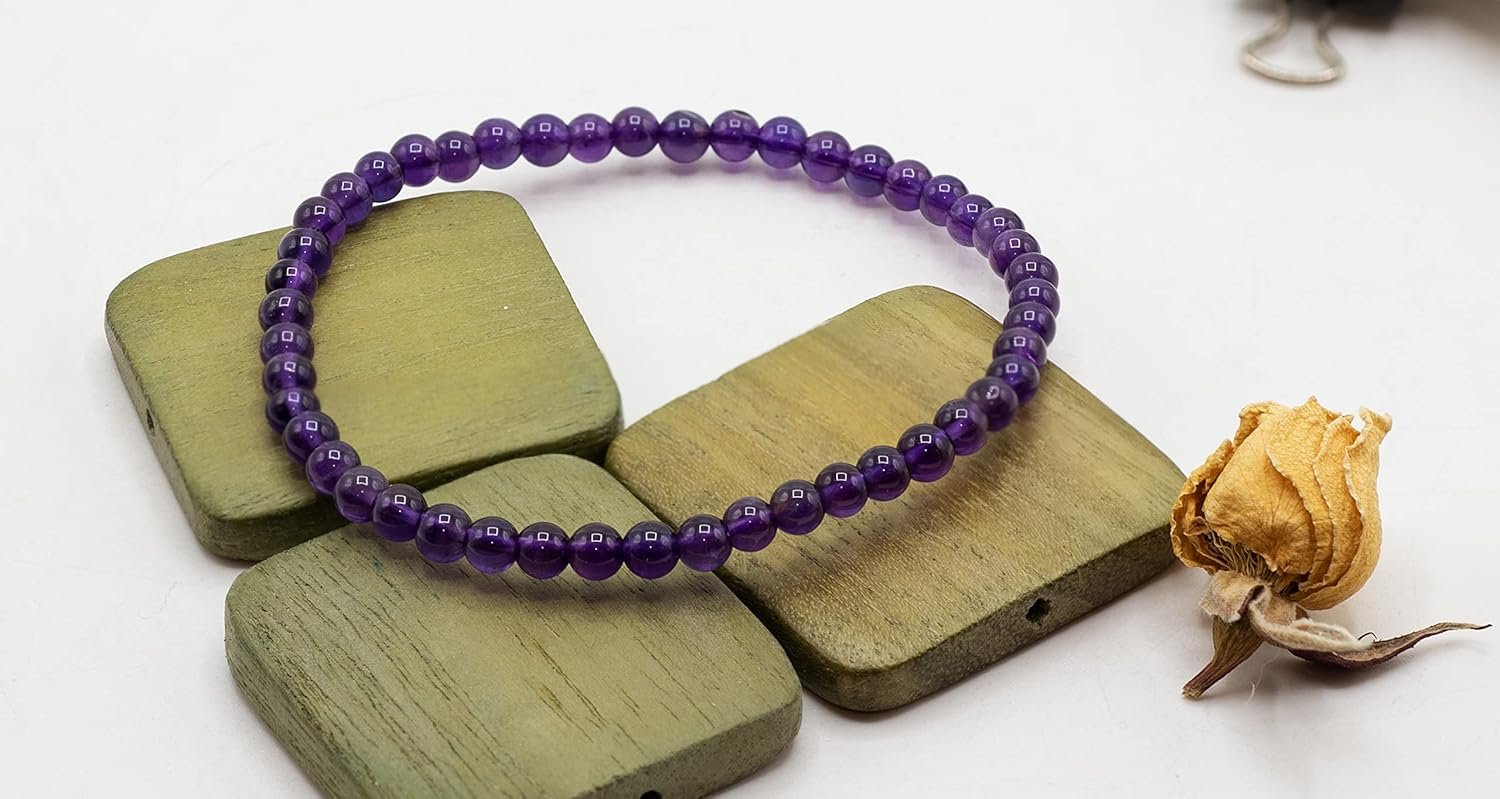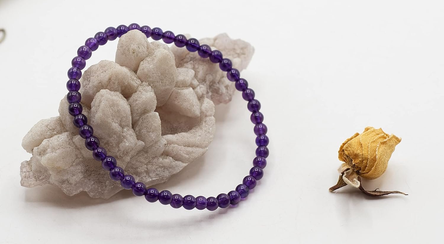 4mm Smooth Round Amethyst Stretch Bracelets in Various Sizes (6.5, 7, 7.5, 8 Inches)