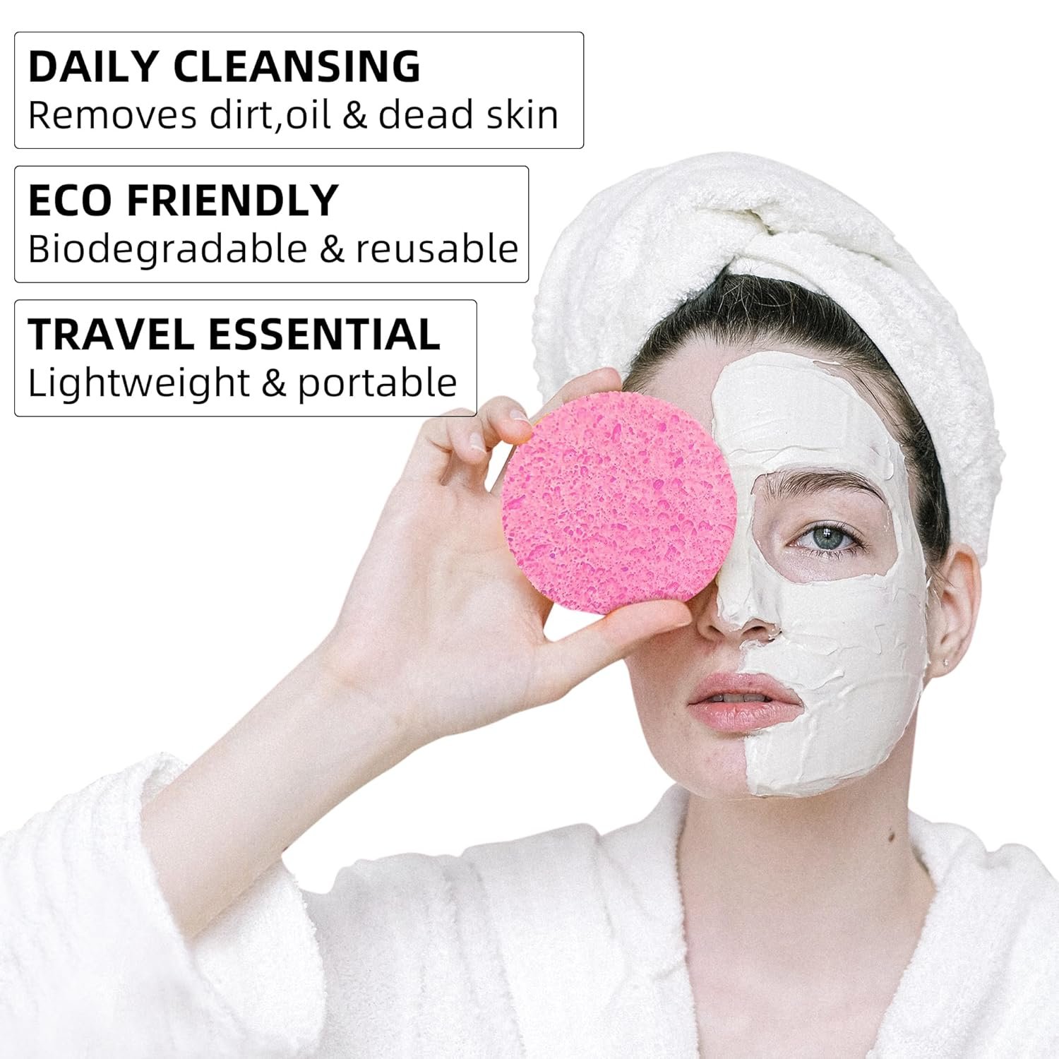 - 【Deep Cleaning】:100% Natural Cellulose Facial Sponges; It is a natural cellulosic sponges that you can use with peace of mind for daily facial cleaning, gentle and deep pore exfoliation, make-up and face mask removal, light peeling and cosmetic cleaning. The pores on the sponge will make it easier for you to clean the stubborn things on your face.