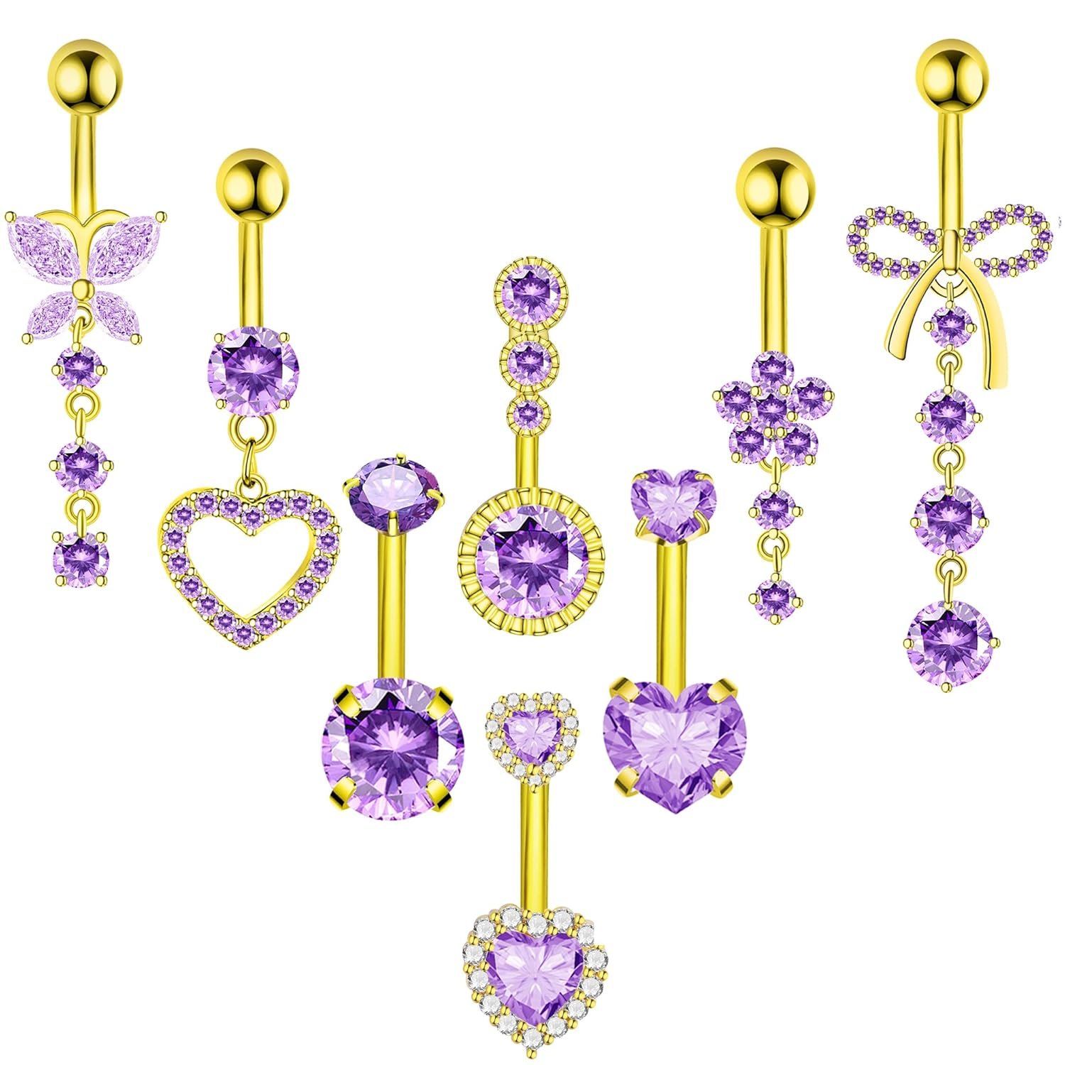 13 reviews for 8Pcs Gold Pink Silver Belly Button Ring Dangle Navel Belly Piercing Jewelry Cute CZ Butterfly Heart Flower Bow Navel Belly Rings for Women 14G Hypoallergenic Surgical Stainless…