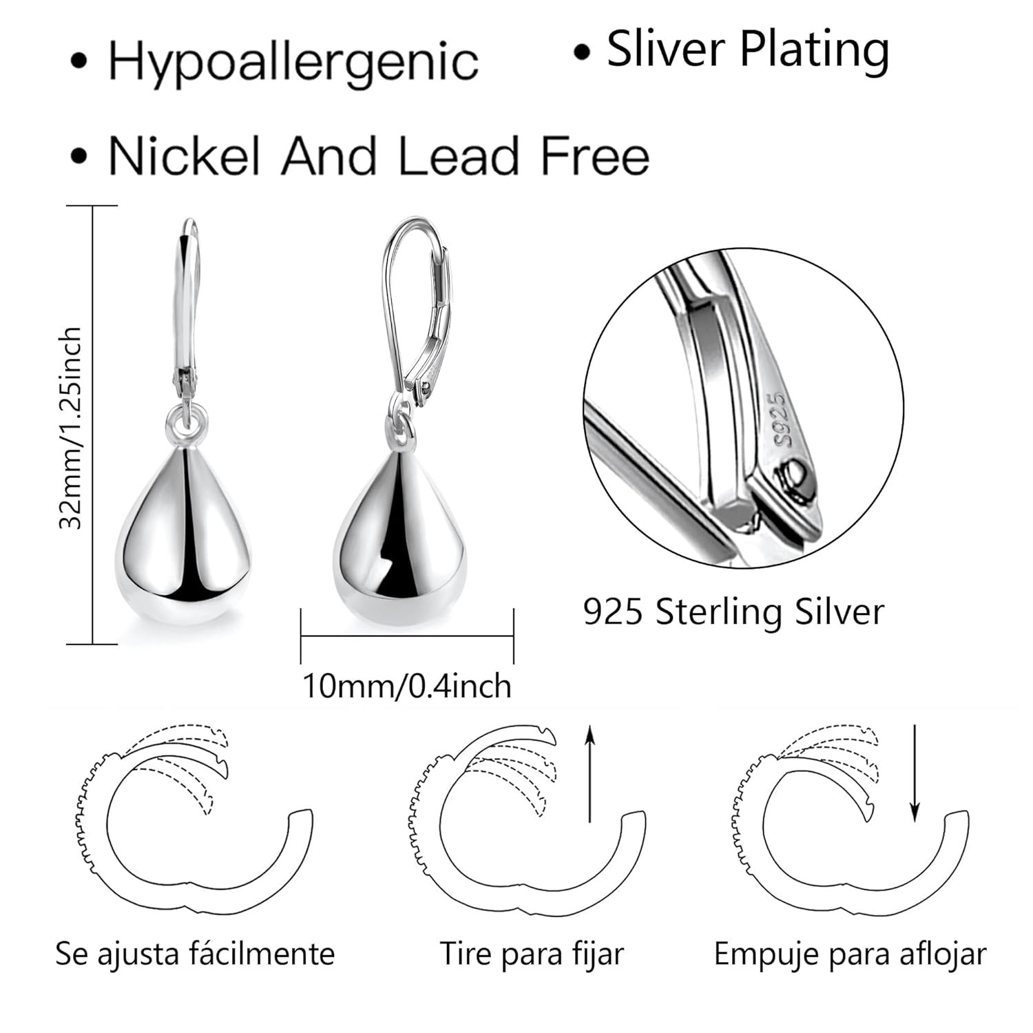 - Quality Material: Made of 925 sterling silver, secured with lever-back, this eye-catching tear drop earrings are 100% handmade,hypoallergenic for sensitive ears, plated with real silver finish, won’t turn your ears green. Suitable for people over 8 years old.