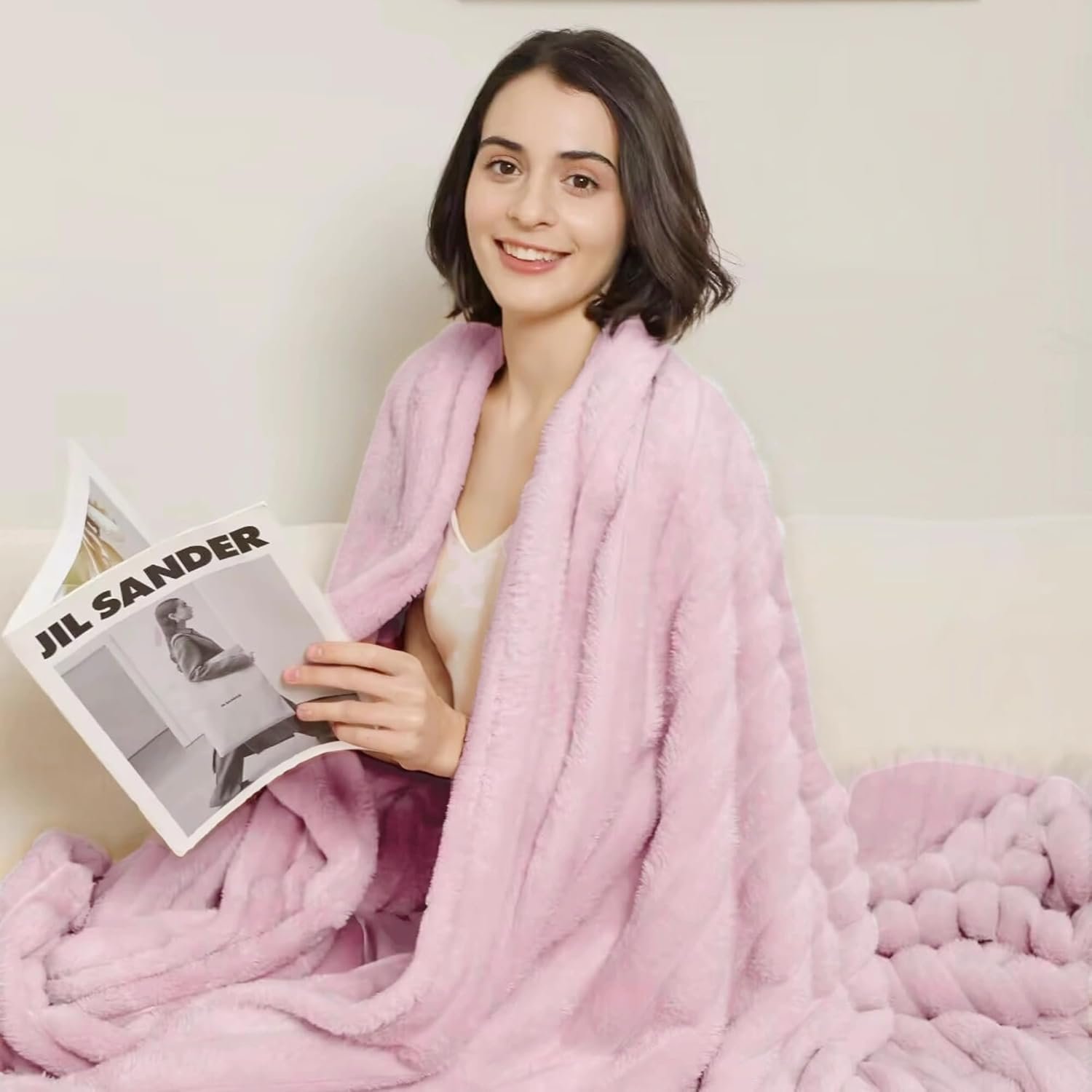 31 reviews for Aganear Fluffy Throw Blanket for Couch,3D Ribbed Jacquard Warm Fuzzy Blanket for Couch, Home Decor for Lightweight Cozy Soft Throw for All Seasons(Pink,50″×60″)