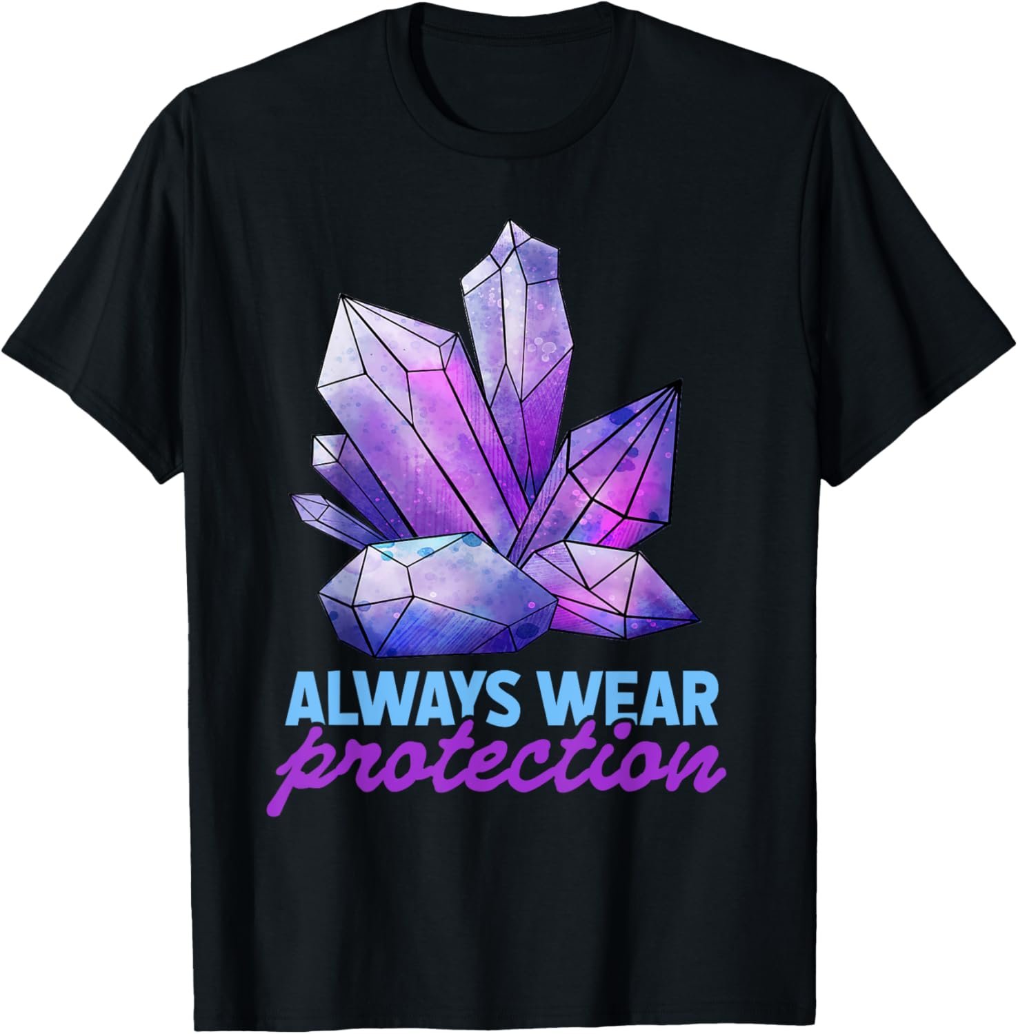 - The witty phrase Always Wear Protection adds a humor to the world of crystal healing, creating a lighthearted and fun atmosphere.Perfect for enthusiasts of energy and crystal therapy, this humorously acknowledges the importance of protecting one’s energy.