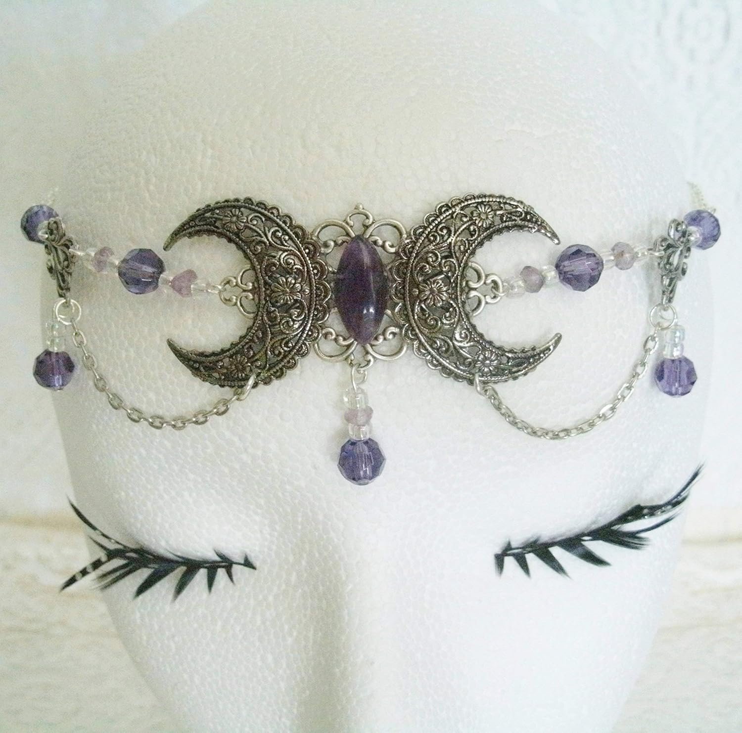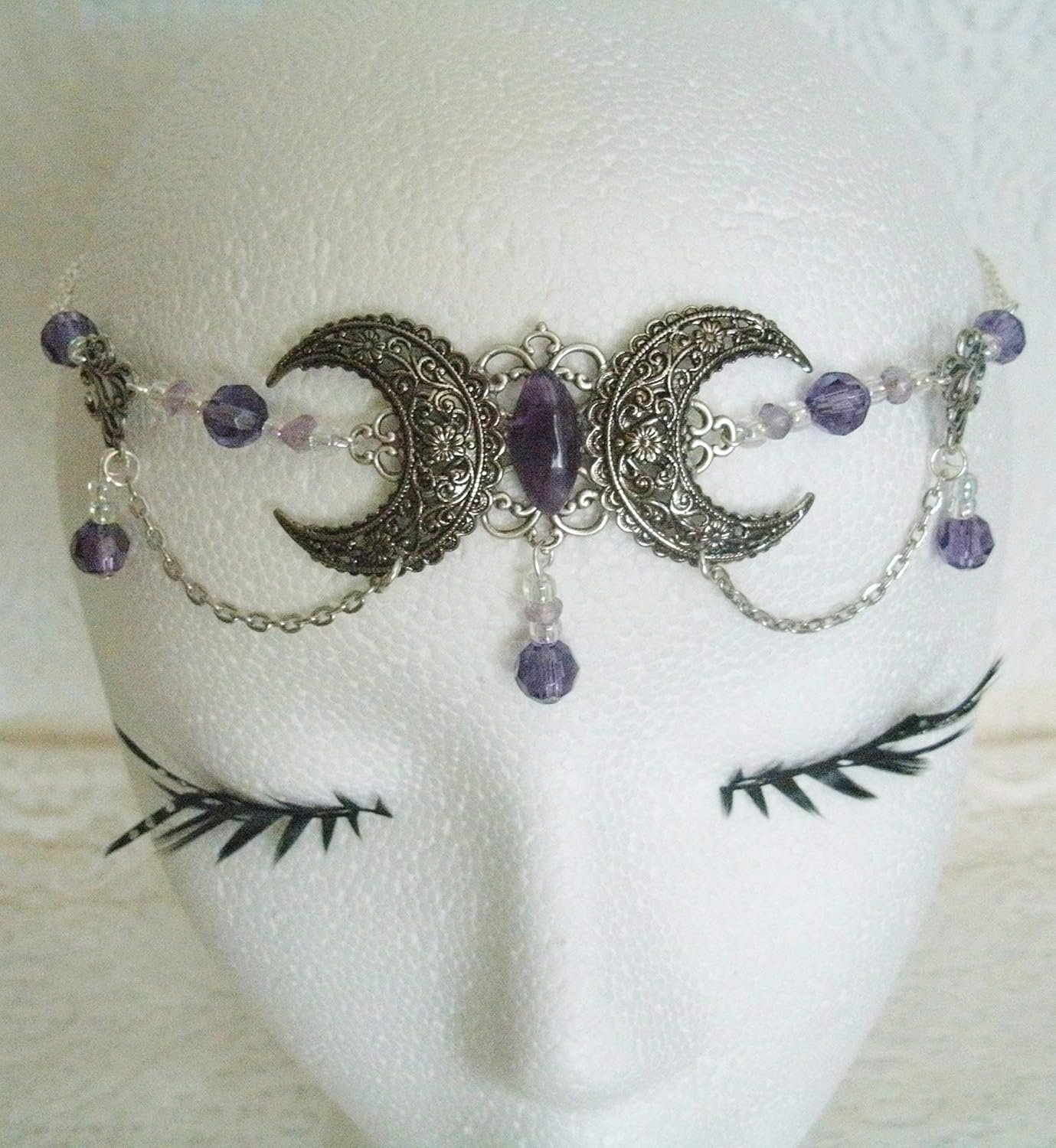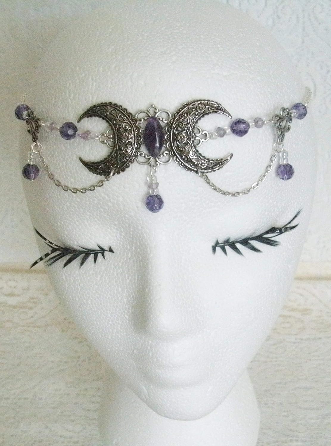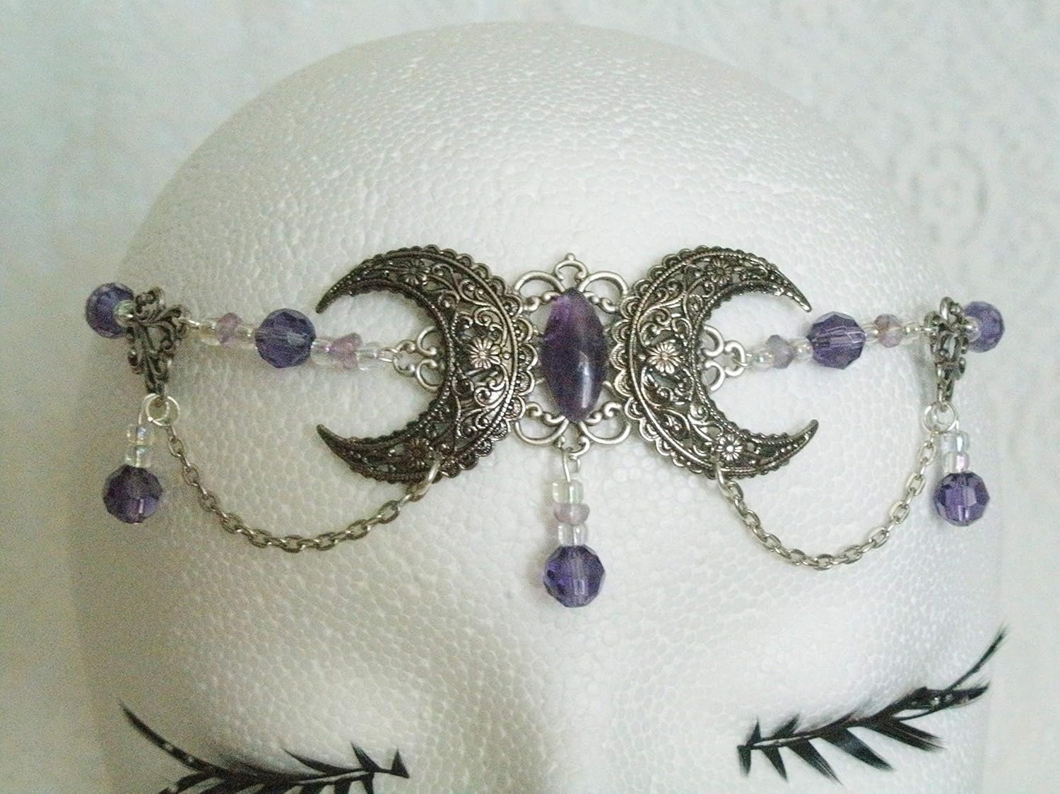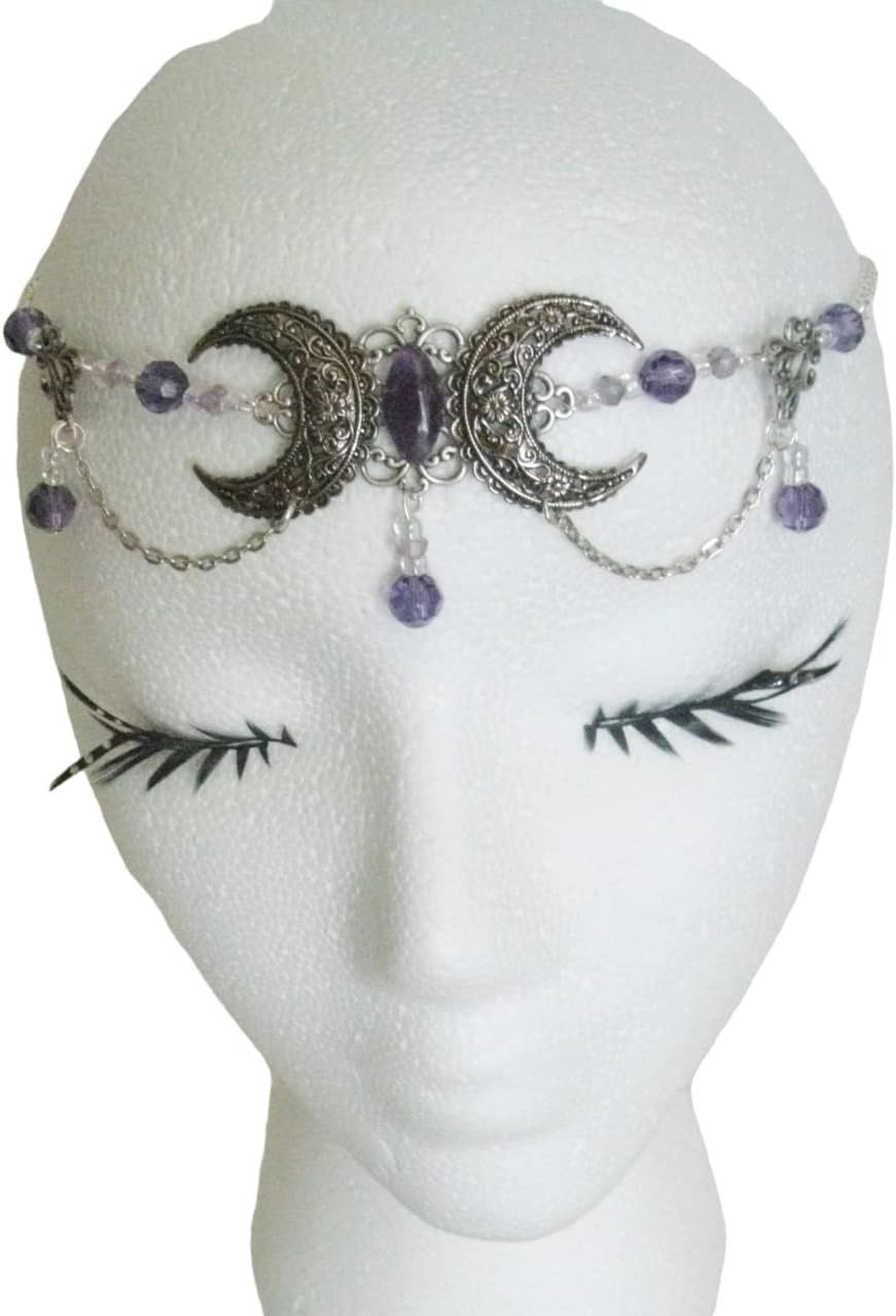 Amethyst Triple Moon Circlet handmade jewelry wiccan pagan wicca witch witchcraft goddess metaphysical headpiece