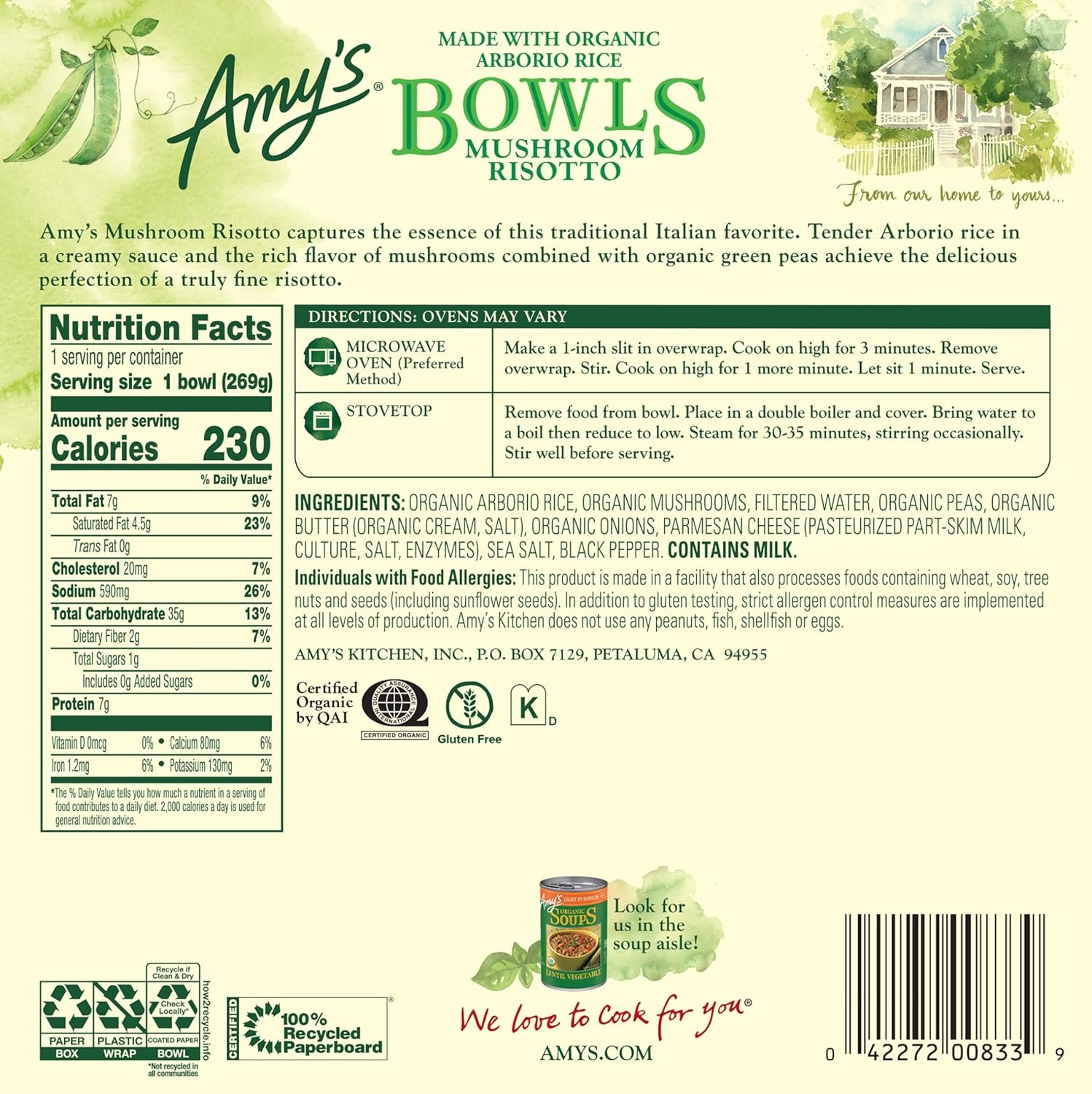 - One single serve bowl of Amy’s Mushroom Risotto the whole family will love