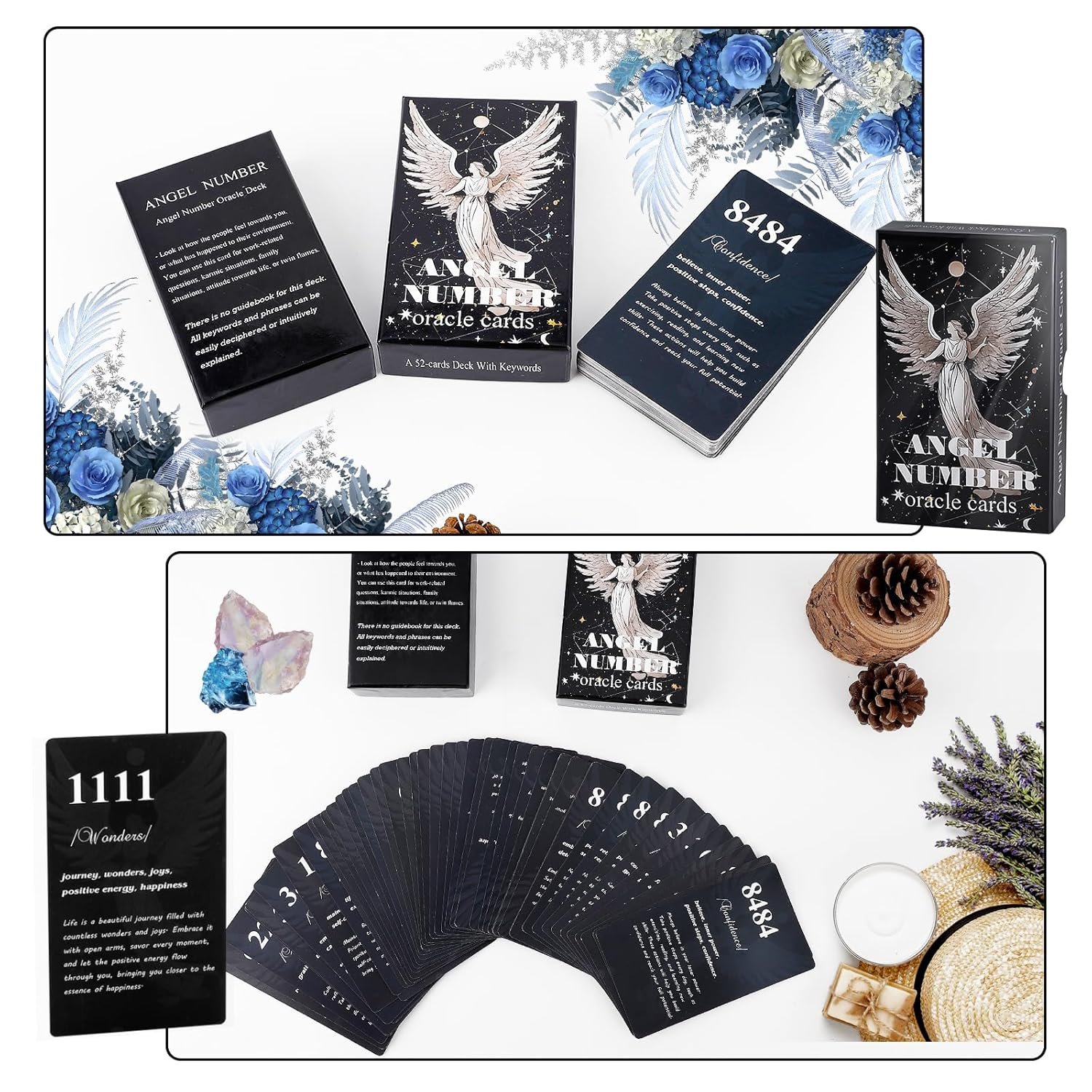 - 👜【Angel Oracle Deck】Presenting a magnificently crafted 52-card Angel Oracle Deck, each card painstakingly featuring a distinct angel number, evocative keywords, and an inspired, channeled message to powerfully empower, deeply inspire, and significantly uplift.