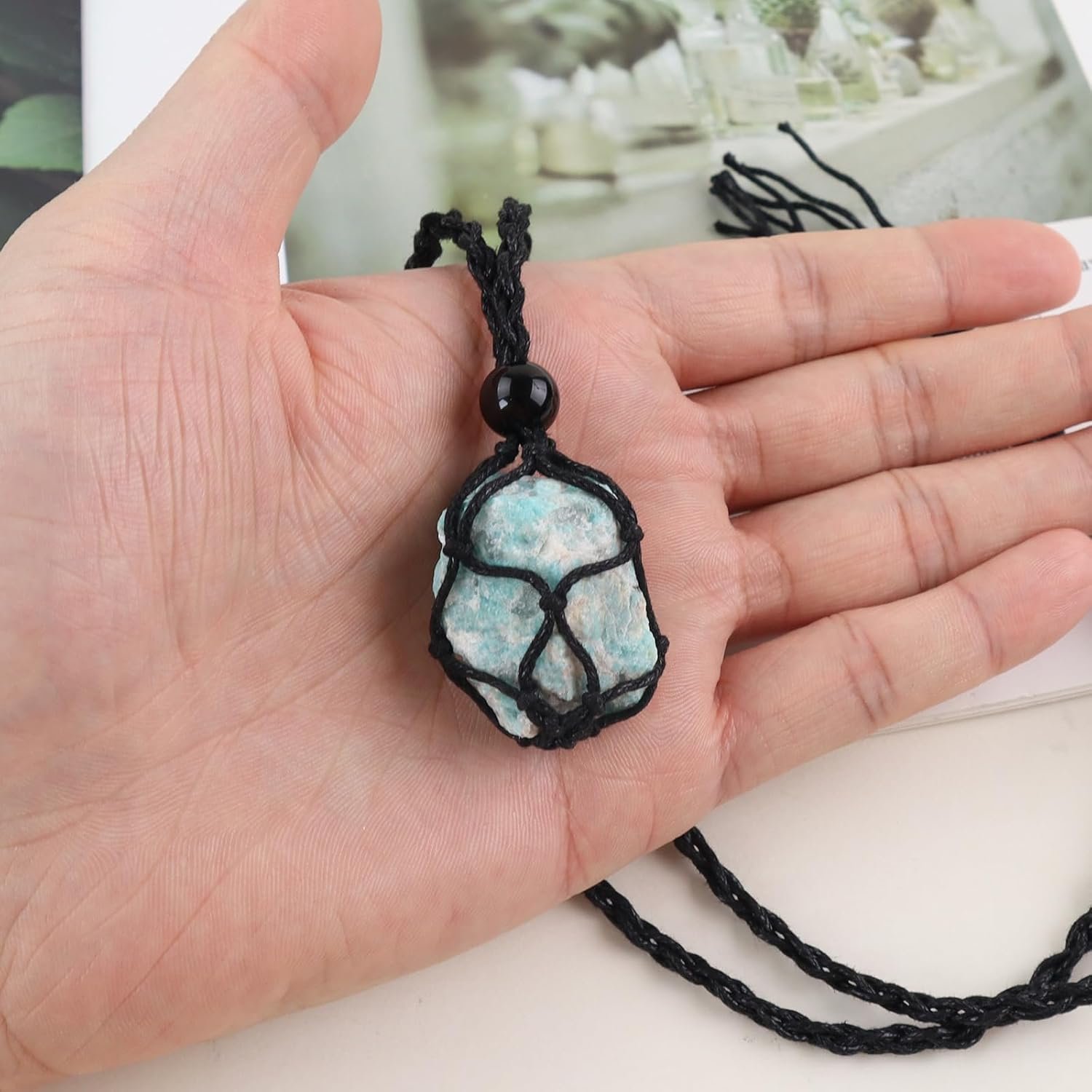 - 【1 Piece of Healing Crystal Necklace】: This crystal necklace is composed of pure hand woven rope and pure natural crystal. Amazonite size: approx 1.57-1.96 inches, stone holder is about 5 cm/1.96inch long.