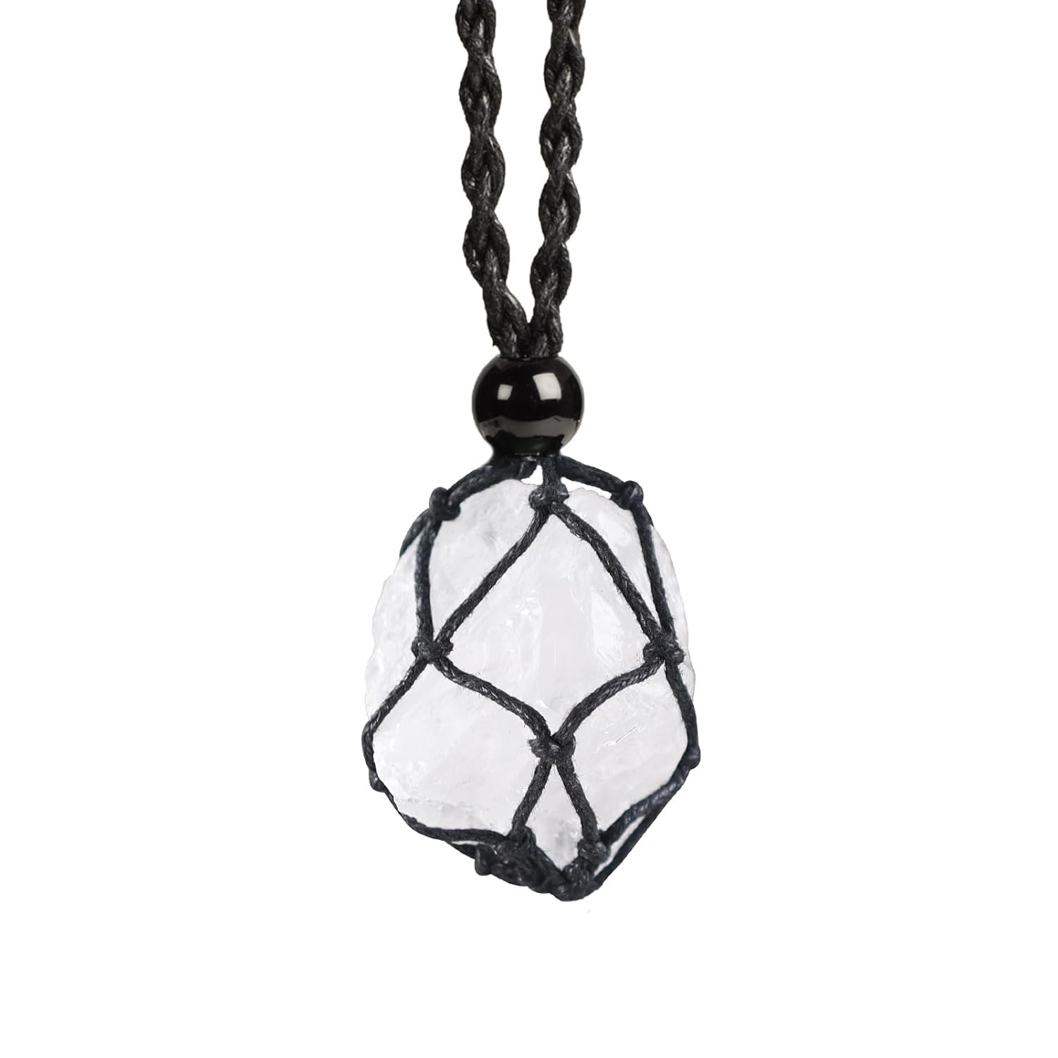 Anjiucc Natural Gemstone Crystal Pendant Necklace Stone Holder Necklace Cord Hand-Woven Necklace with Adjustable Length for Women Men