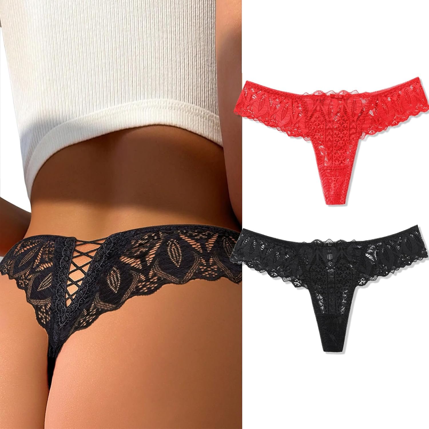 Disclosure8 reviews for Avidlove Panties for Women Lace Thongs Cross Back Tanga Sexy Cheeky Low Waist Bikinis Underwear