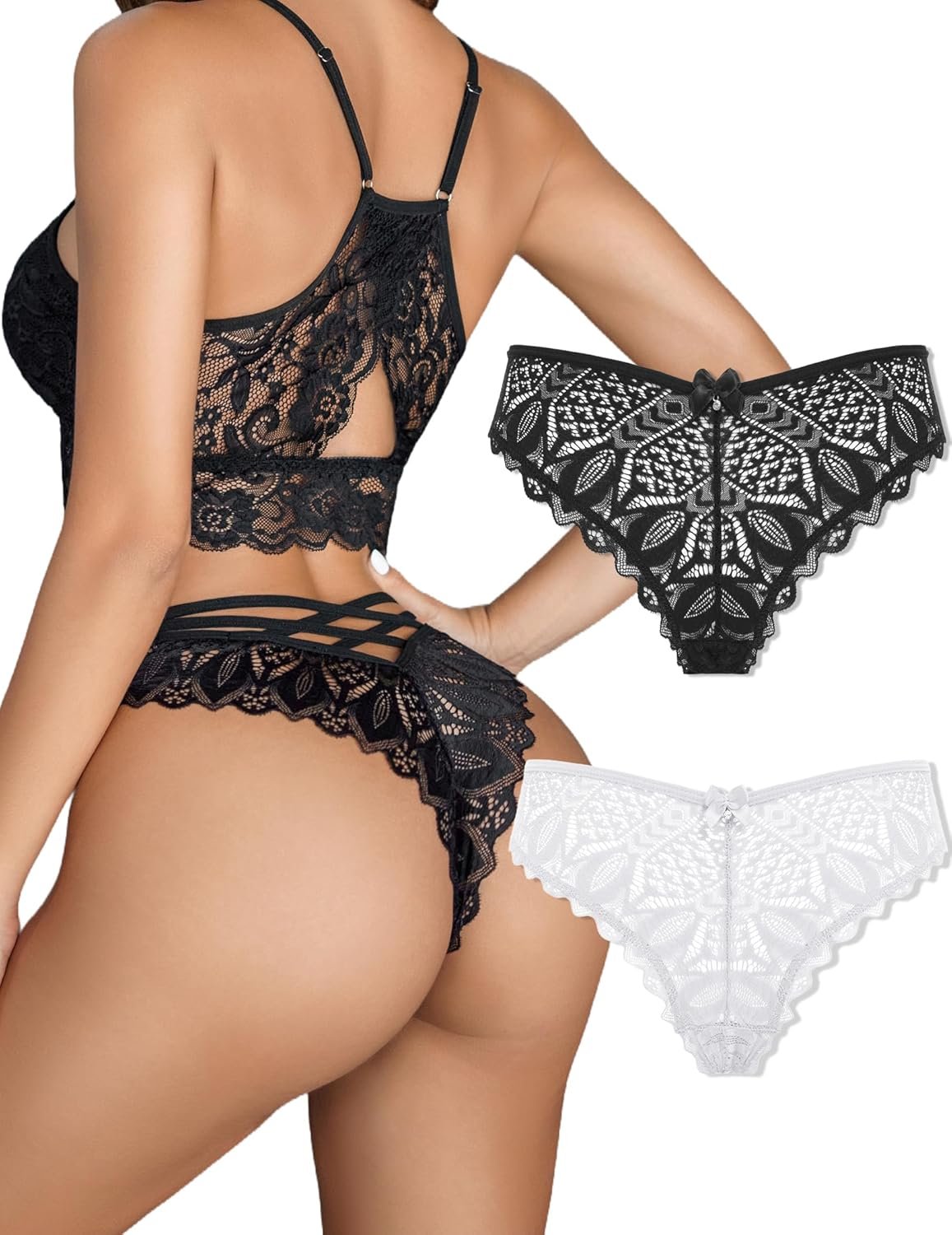 Avidlove Womens Underwear Lace Cheeky Panties Criss Cross Back Bikini Thongs Sexy Undies