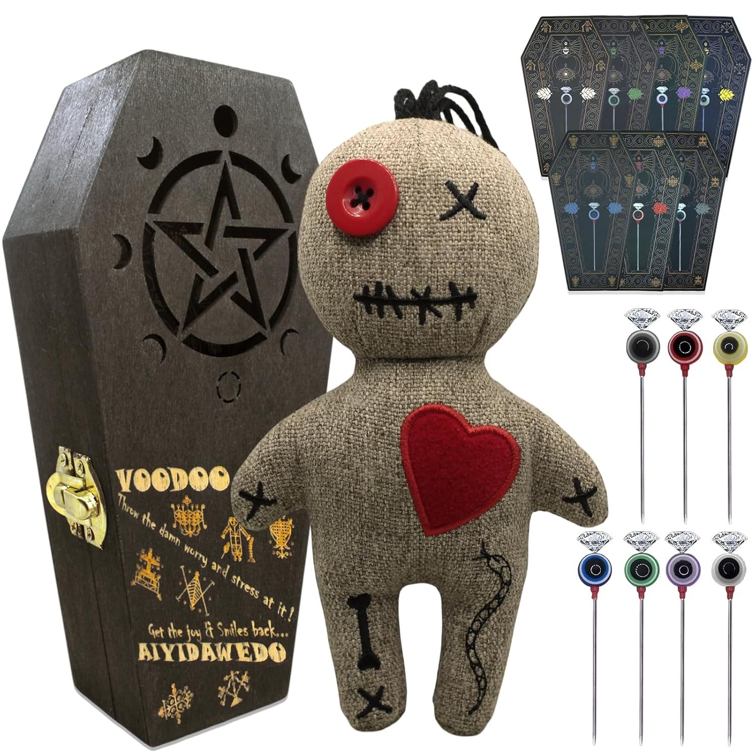 24 reviews for Ayidawedo®Authentic LOA Voodoo Doll Kit Include Spell Cards and Stress Relief Pins in Wooden Coffin Box – Gag Gift Complete Set