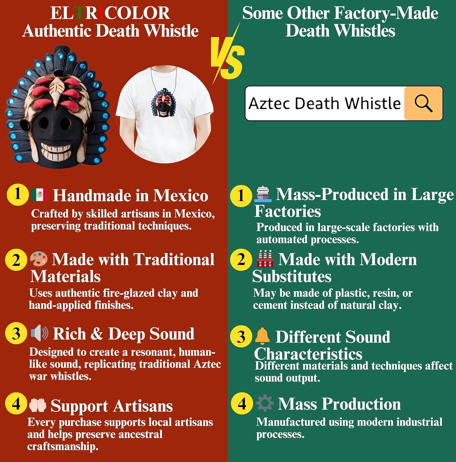 If you’ve never heard an Aztec death whistle, you absolutely need to. It’s handcrafted, authentically made from indigenous people, well worth the price they ask, and it’s durably made of natural materials (feels similar to a terracotta pot). I also love the detailed claws as part of the fierce decorations.