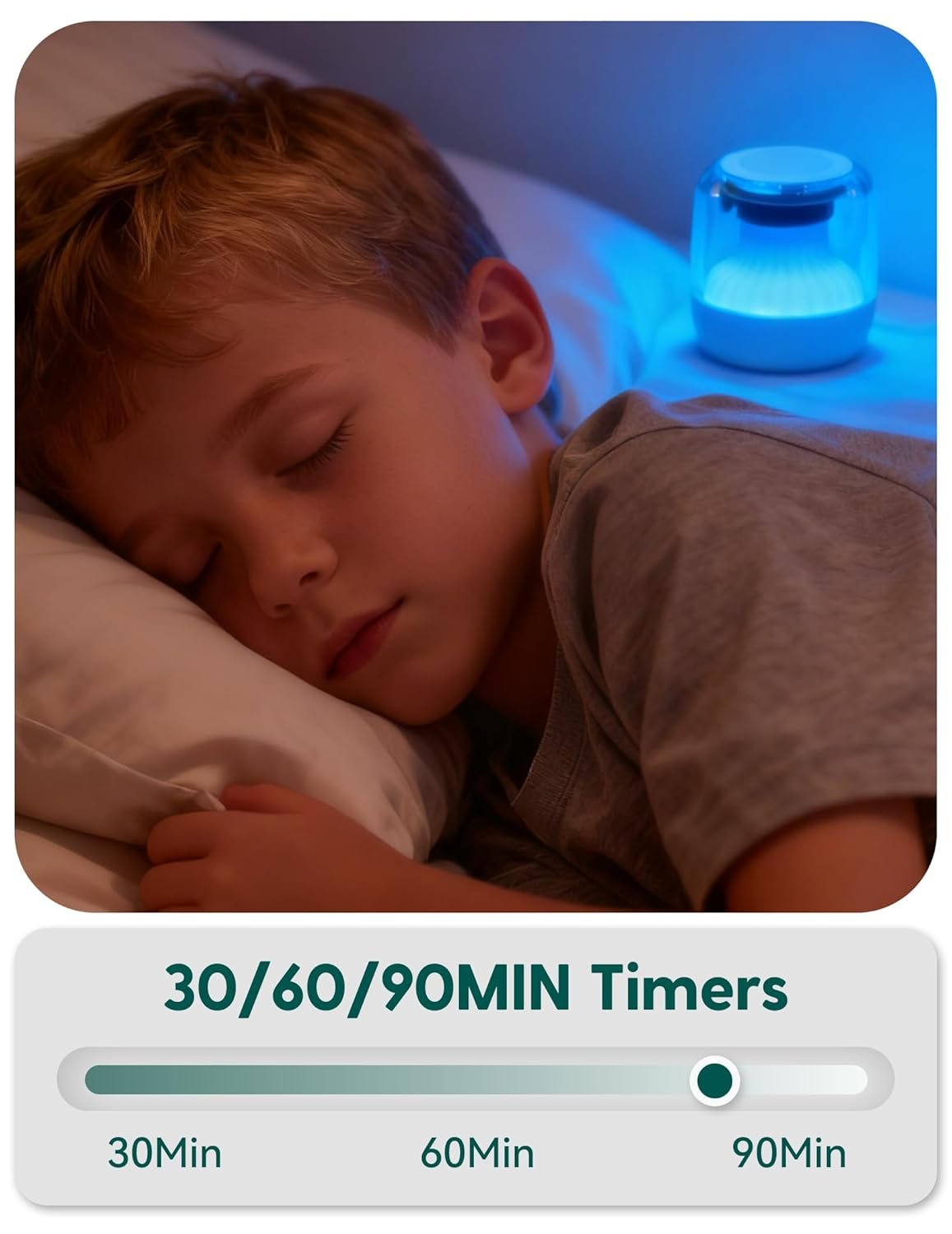 - 【Super Easy to Use】No fumbling with complex settings! Press the center button to start/switch sounds. Timer (30/60/90min) + memory function saves your faves—perfect for late nights or groggy mornings—hassle-free!