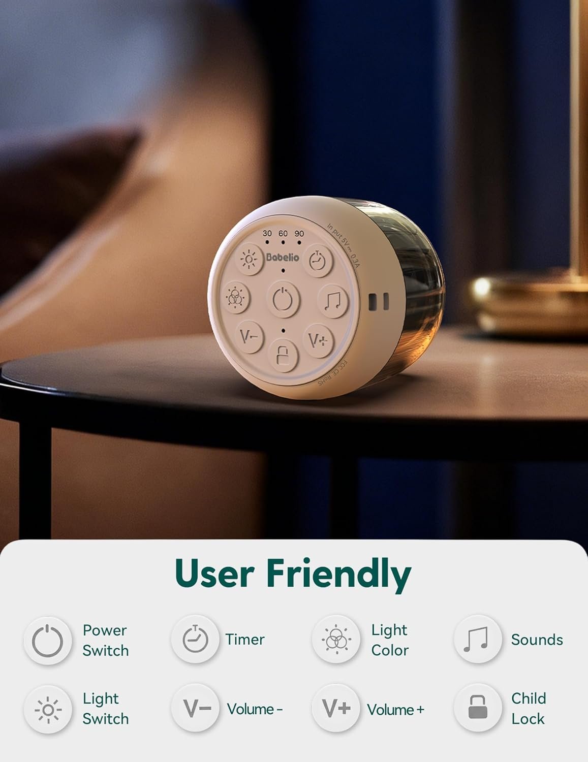 Product being reviewed: Babelio Pocket Glow White Noise Sound Machine – Upgraded 7 Color Night Lights, 20 Non-Looping Sounds, Timer & Memory Function, Portable for Adults & Babies, New Black