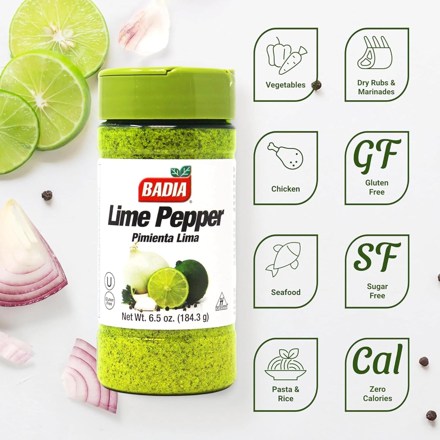24 reviews for Badia Lime Pepper Seasoning, 6.5 oz – Pepper, Garlic & Onion, Zesty Citrus Blend for Chicken, Seafood & Vegetables