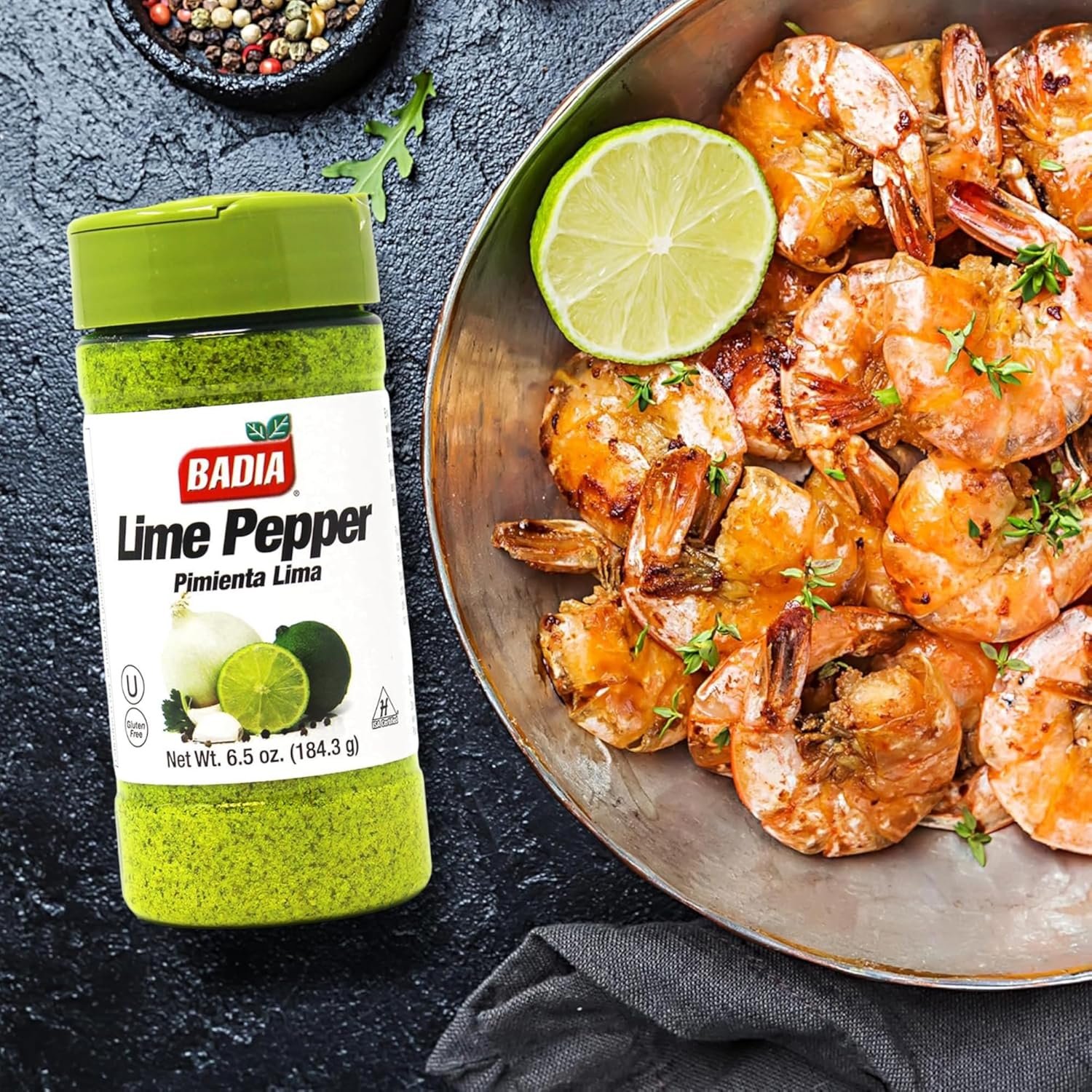 Badia Lime Pepper Seasoning, 6.5 oz – Pepper, Garlic & Onion, Zesty Citrus Blend for Chicken, Seafood & Vegetables
