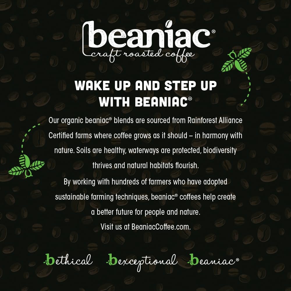 beaniac Organic Full On French Roast, Dark Roast, Single Serve Compostable K Cup Coffee Pods, Organic Arabica Coffee, Keurig Brewer Compatible, 30 Count