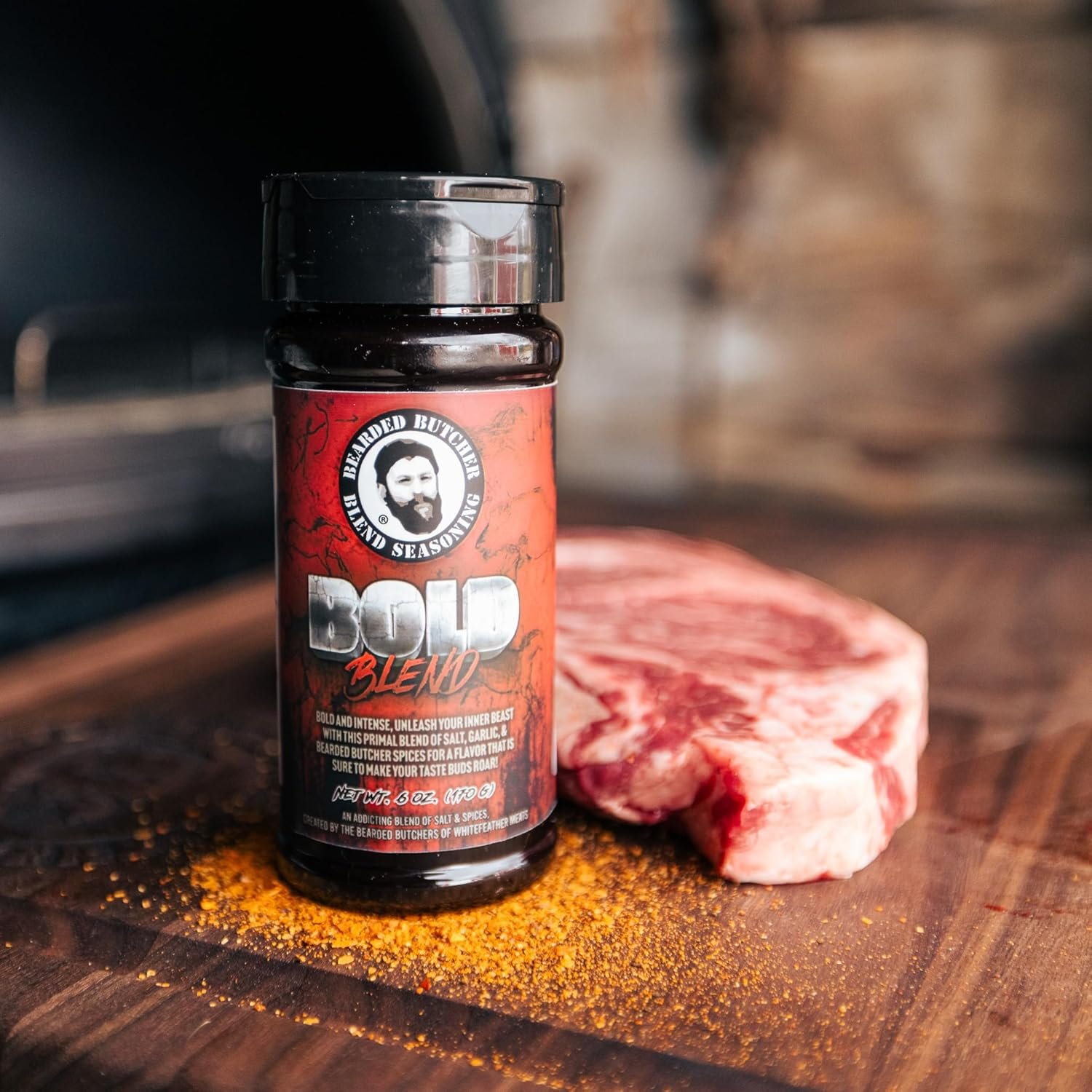 Bearded Butchers Bold Blend, 6 oz Shaker – Bold Salt, Garlic & Spice Blend for Steaks, Burgers, Roasts, Game Meats, Fries – No MSG, Gluten-Free, No Sugar, Intense, Savory Flavor