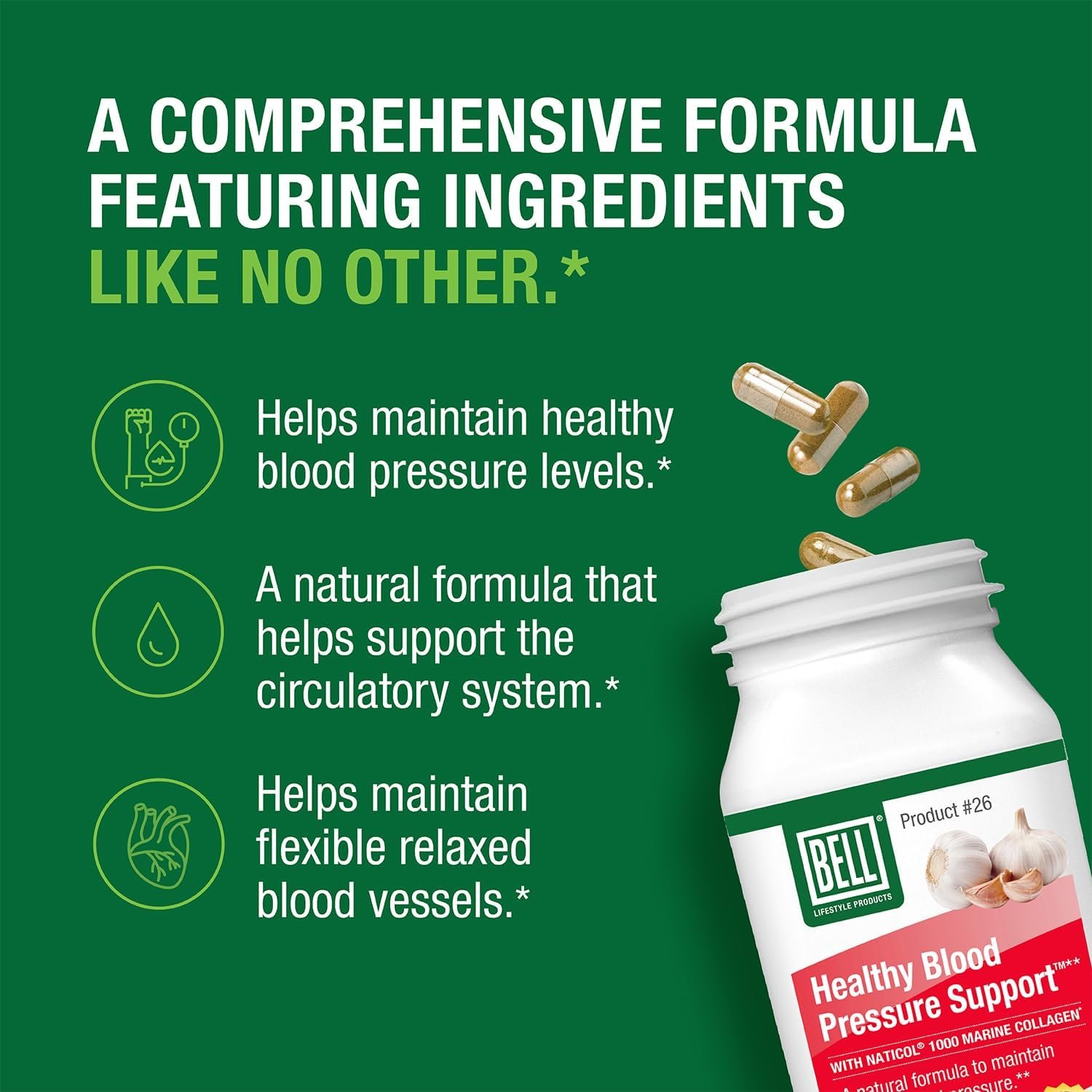 - COMPREHENSIVE NATURAL BLOOD PRESSURE SUPPORT – Discover an outstanding blend of high-potency ingredients including Naticol 1000 Marine Collagen, Garlic extract, Green Coffee Bean extract, and more, meticulously formulated to help maintain healthy blood pressure levels and cardiovascular health.