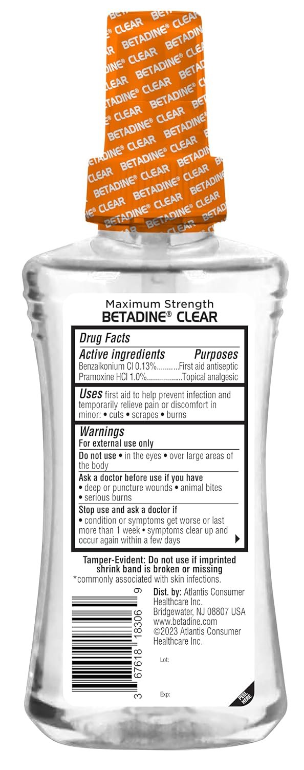 14 reviews for Betadine Clear First Aid Spray, Max Strength Pain Relieving Antiseptic Cleansing Spray, No Stinging, Kills 99.9% of Germs*, Helps Prevent Infections, 6 oz