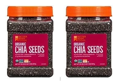 22 reviews for Better Body Foods, Organic Chia Seeds with Calcium, Iron, Potassium, 5350mg Omega-3s, Non-GMO and Gluten Free | Add Omega 3 Protein to Salad, Smoothie, Oatmeal Acai Bowl | Pack…