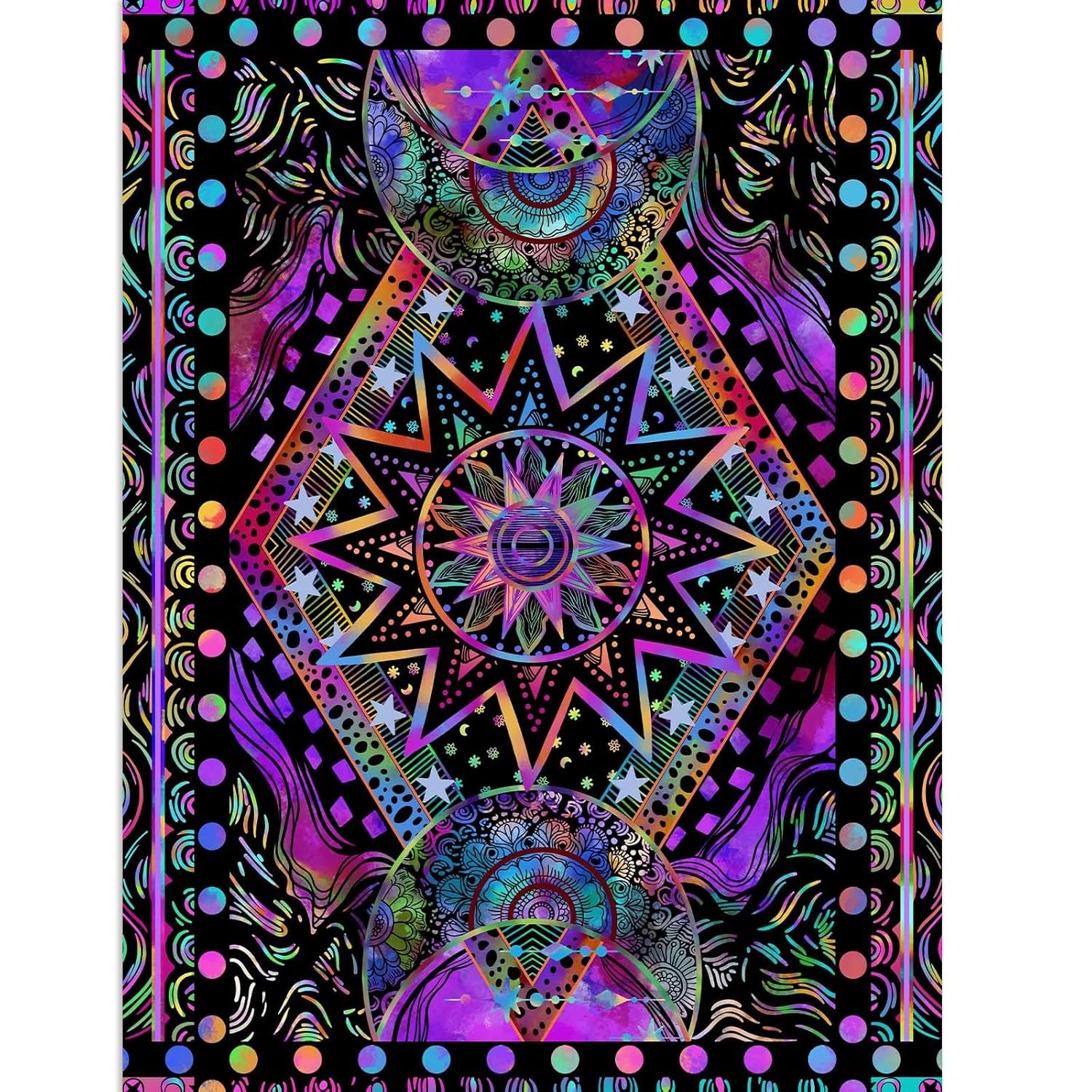 - 🎊【UV Reactive】With special ink and HD digital printing technology, we proudly make this UV/black light reactive sun tapestry. Brings bright color to your room whether under natural light or UV light. It is highly praised.