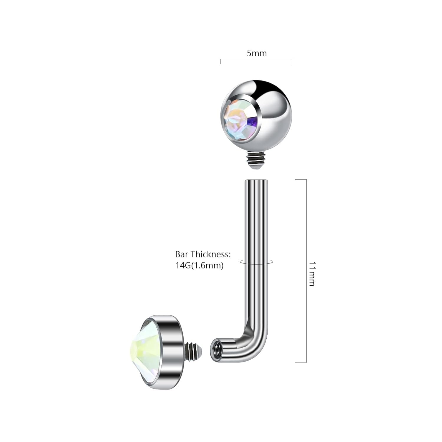 - Measurements&Usage: Gauge: 14G (1.6mm). Curved Bar Length: 11mm (7/16”). Ball Size: 5mm. Usage: This crystal piercing jewelry for women can be used as christina or vertical hood piercing.