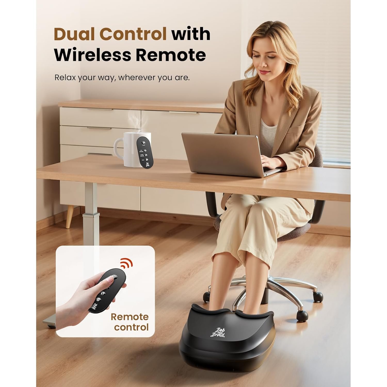 - Easy to Use & Maintain: Bob and Brad foot massager for plantar fasciitis makes relaxation effortless with its handy remote control—adjust settings without bending over! Weighing only 7.5 lbs and designed with a compact size (15×12.7×6.8 inches), it’s portable, easy to store, and fits seamlessly into any space. The washable,removable foot sleeves make cleaning and maintenance a breeze. Enjoy hassle-free comfort and keep your massager fresh for every use!