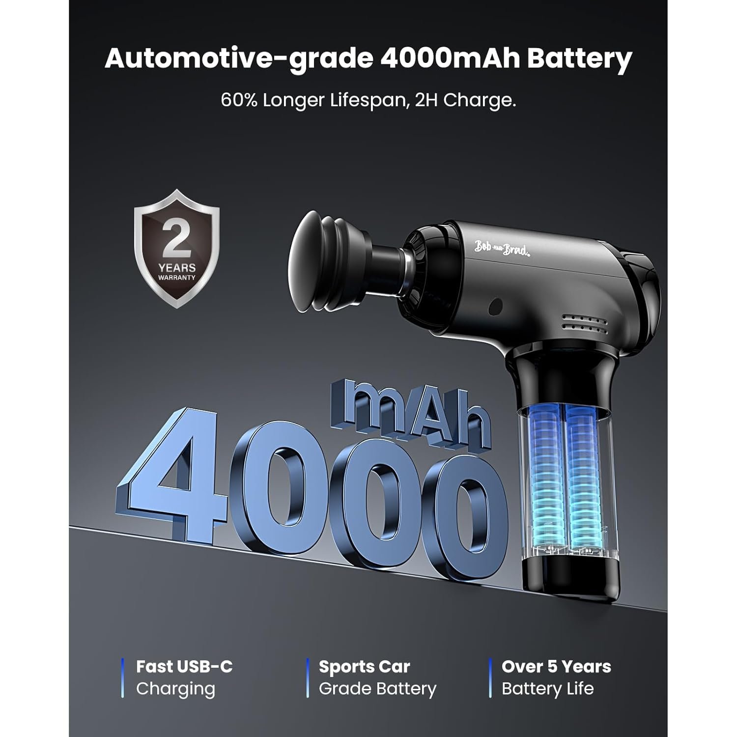 - 4000mAh High-Capacity Battery with USB-C Fast Charging: The automotive-grade battery offers enhanced protection while delivering 60% longer lifespan than standard batteries. With 15W PD fast charging, it powers up 40% faster, reaching a full charge in just 2 hours – so you spend less time waiting and more time recovering. The USB-C charging port works with all standard chargers (A-C/C-C cables, 5V/2A adapters) for convenient charging anywhere.