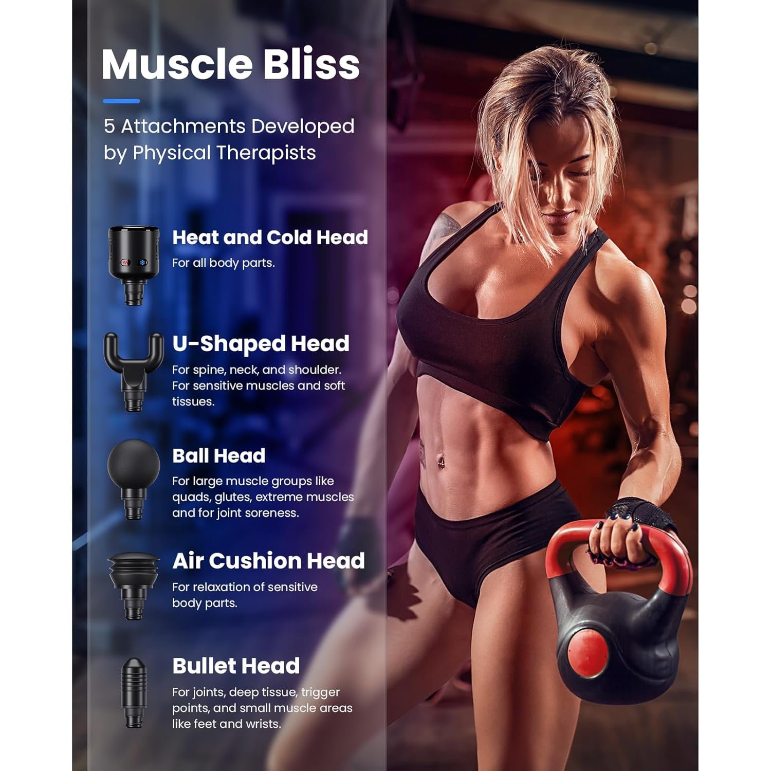- Gift of wellness for Men & Women: Developed by renowned physical therapists Bob and Brad, this electric massager features 5 interchangeable heads to target muscles with precision. Its ergonomic design ensures comfortable handling, with a non-slip grip that reduces wrist strain during extended use. Packaged in a premium box, it’s ideal for birthdays, Valentine’s Day, Thanksgiving, Christmas, or holidays. Backed by a 2-year warranty for worry-free ownership.