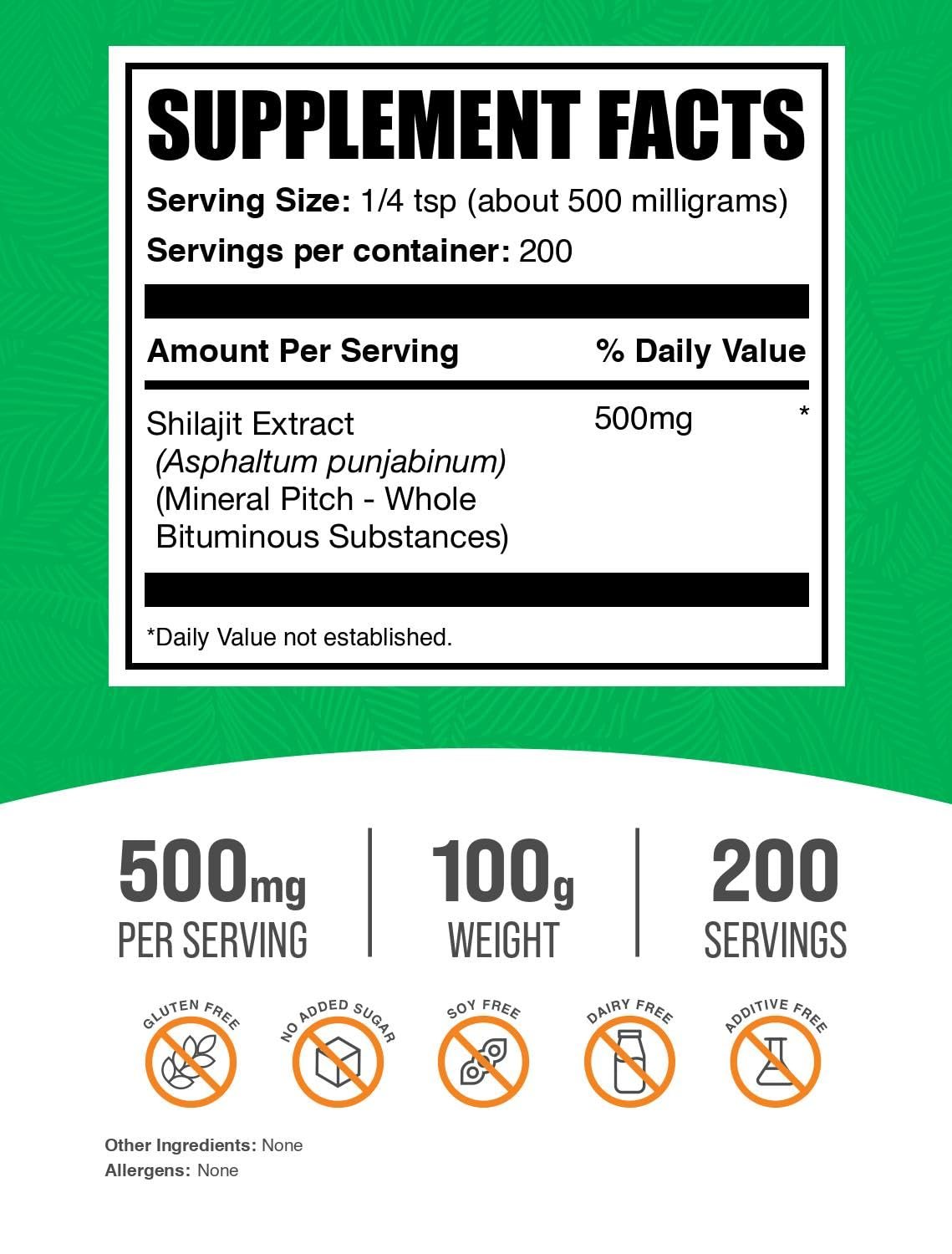 BulkSupplements.com Shilajit Extract Powder – Fulvic Acid Supplement, Shilajit Supplement – Gluten Free, 500mg per Serving of Shilajit Powder, 100g (3.5 oz) (Pack of 1)