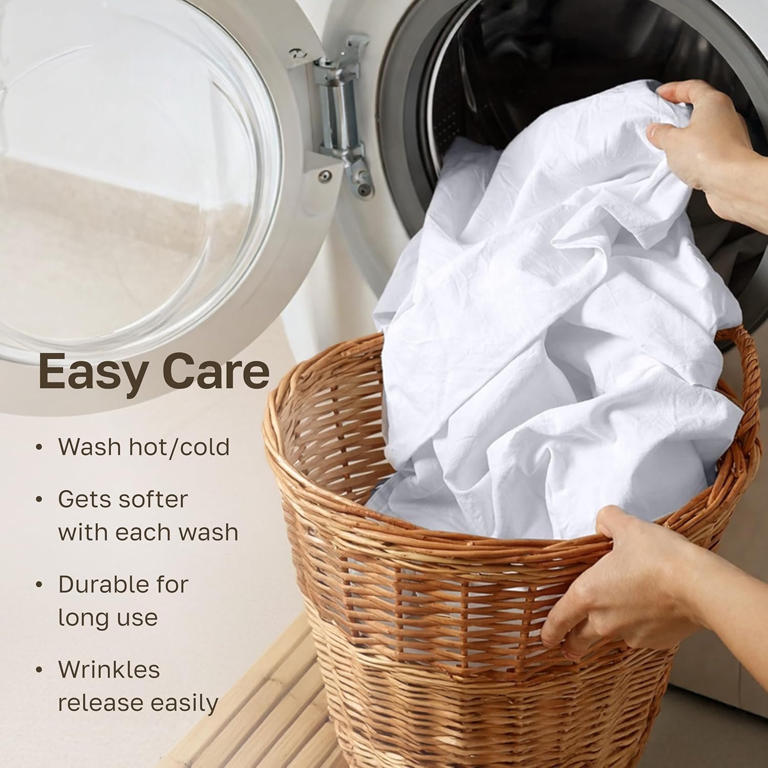- DURABLE, COLORFAST & EASY CARE: You can machine wash and dry our white bed sheets queen size at a normal setting, and they will come out looking great for years. Our deep pocket bedsheets are durable and tested for linting and pilling, with a smooth finish that stays neat with regular care. These queen bed sheets also tested for pilling, fading, and shrinkage.