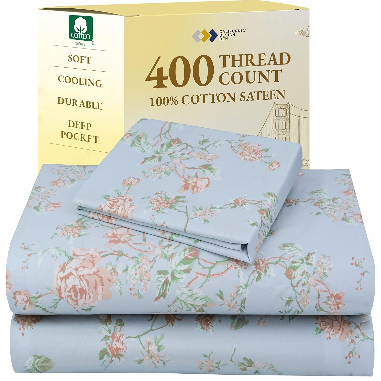 I must say this is a wonderful product, made with quality and care; you can truly see that California Design Den cares about what they make, and it’s clear. This sheet set is soft and comfortable, especially for cotton. This sheet set fits my twin mattress perfectly and looks great on it, too. It’s thick but not too thick, and it’s quite durable too. The green I got is beautiful, too. It is great. Quality, I’m sure I’ll be buying from this brand again. I highly recommend California Design Den.