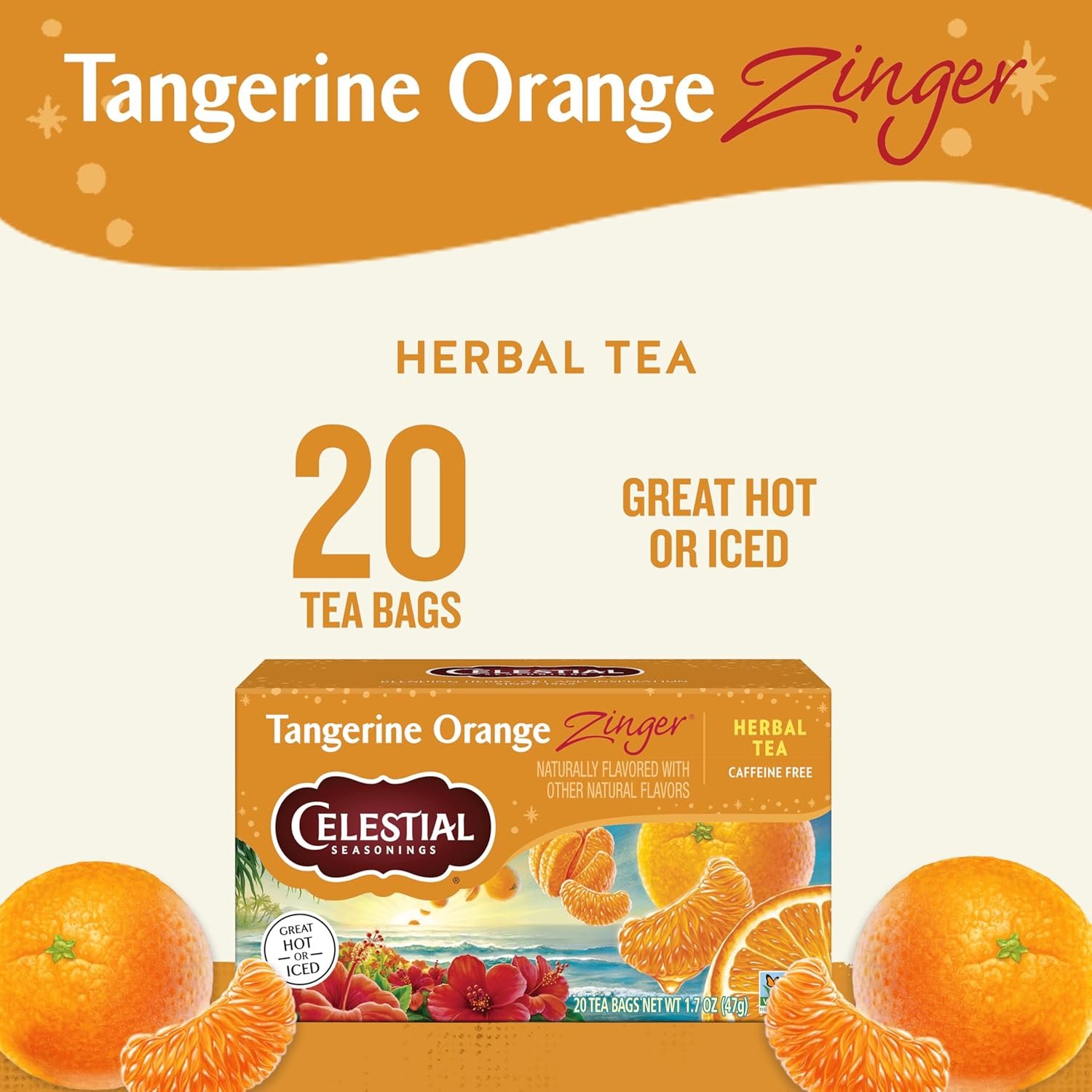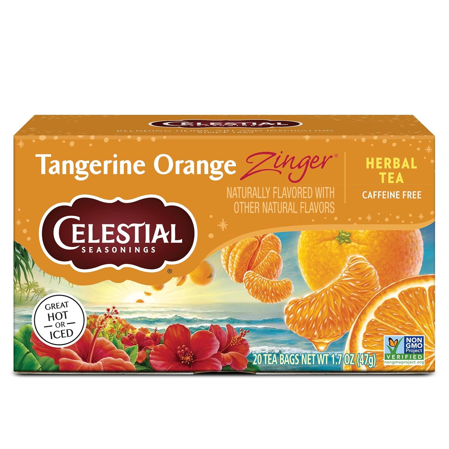 Celestial Seasonings Tangerine Orange Zinger Herbal Tea, Caffeine Free, 20 Tea Bags Box