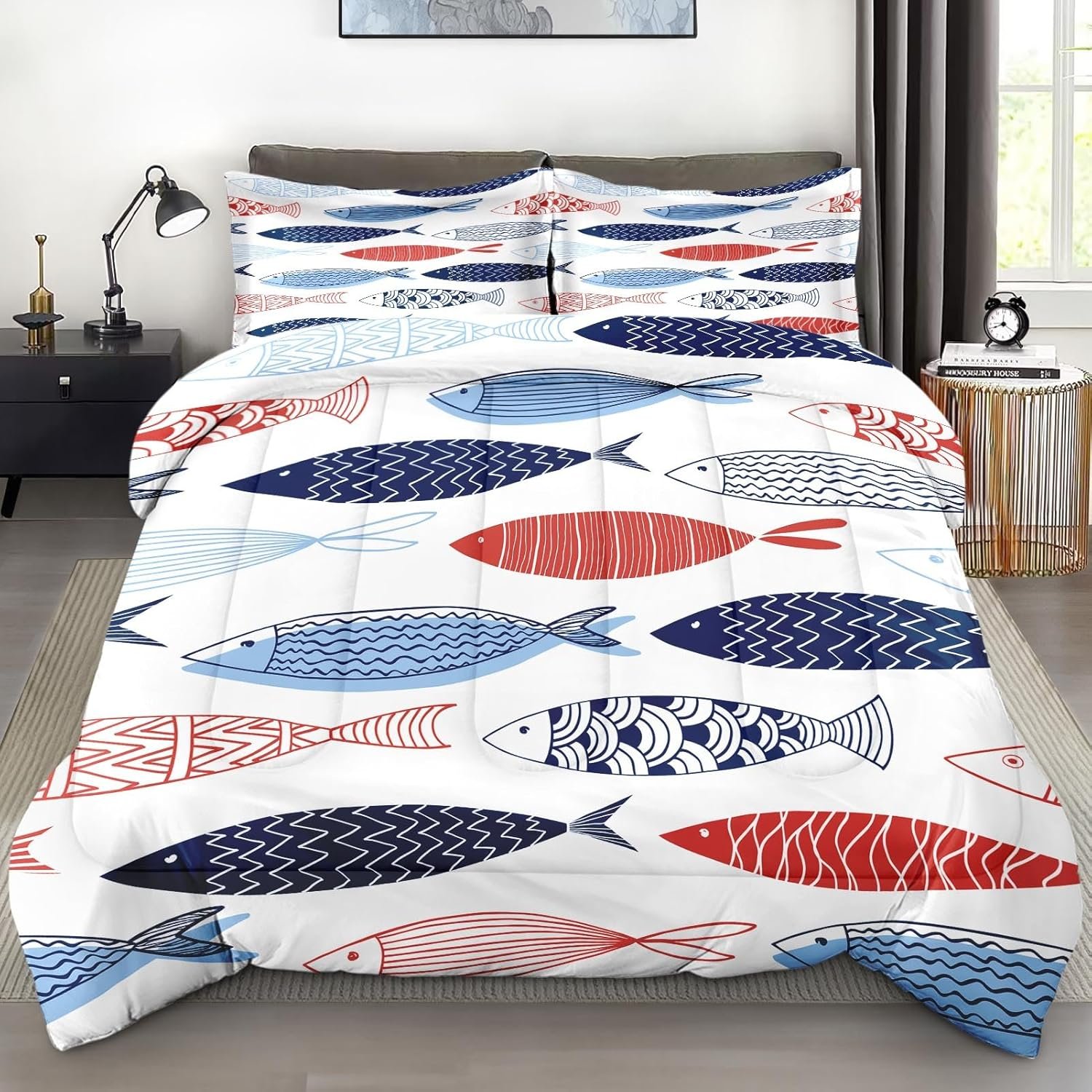 35 reviews for Comforter Set Twin Size, Fish Blue Summer Soft 2 Pcs Bedding for Kids and Adults, Red Sea Cute Comforter Set with Pillowcase, for Bedroom Bed Decor