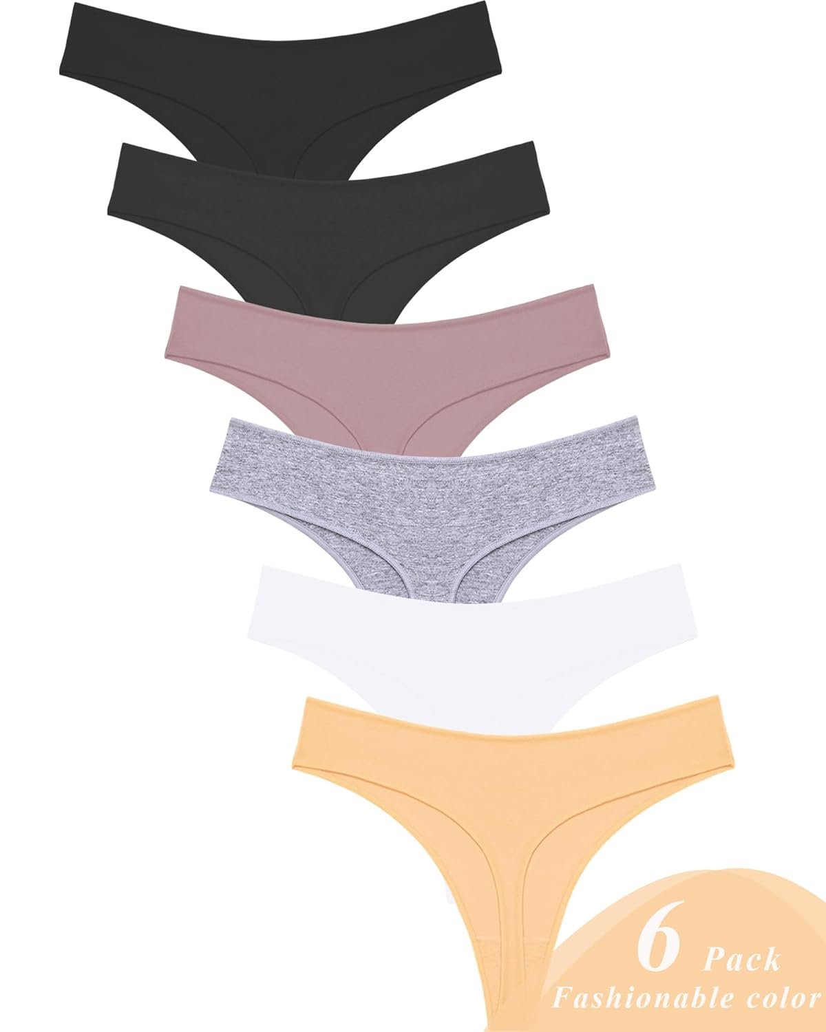 ANZERMIX Women’s Breathable Cotton Thong Panties Pack of 6
