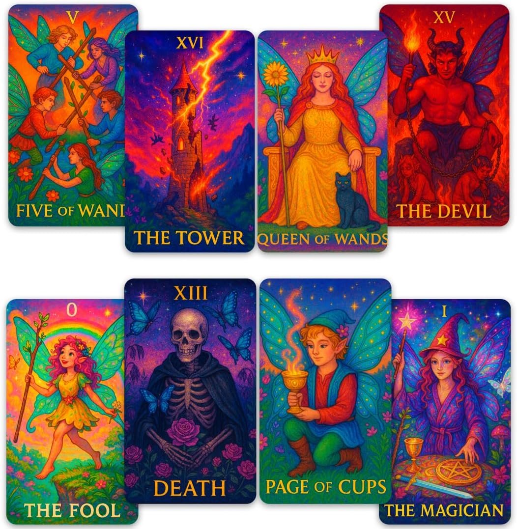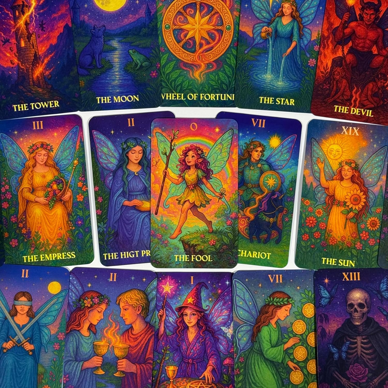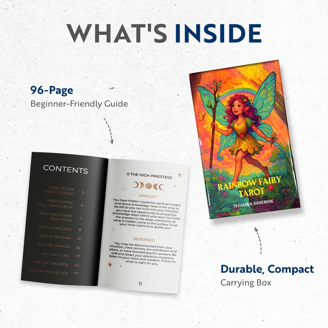 - ✨ Charming Fairy-Themed Tarot Deck – 78 unique cards inspired by rainbow light and nature spirits