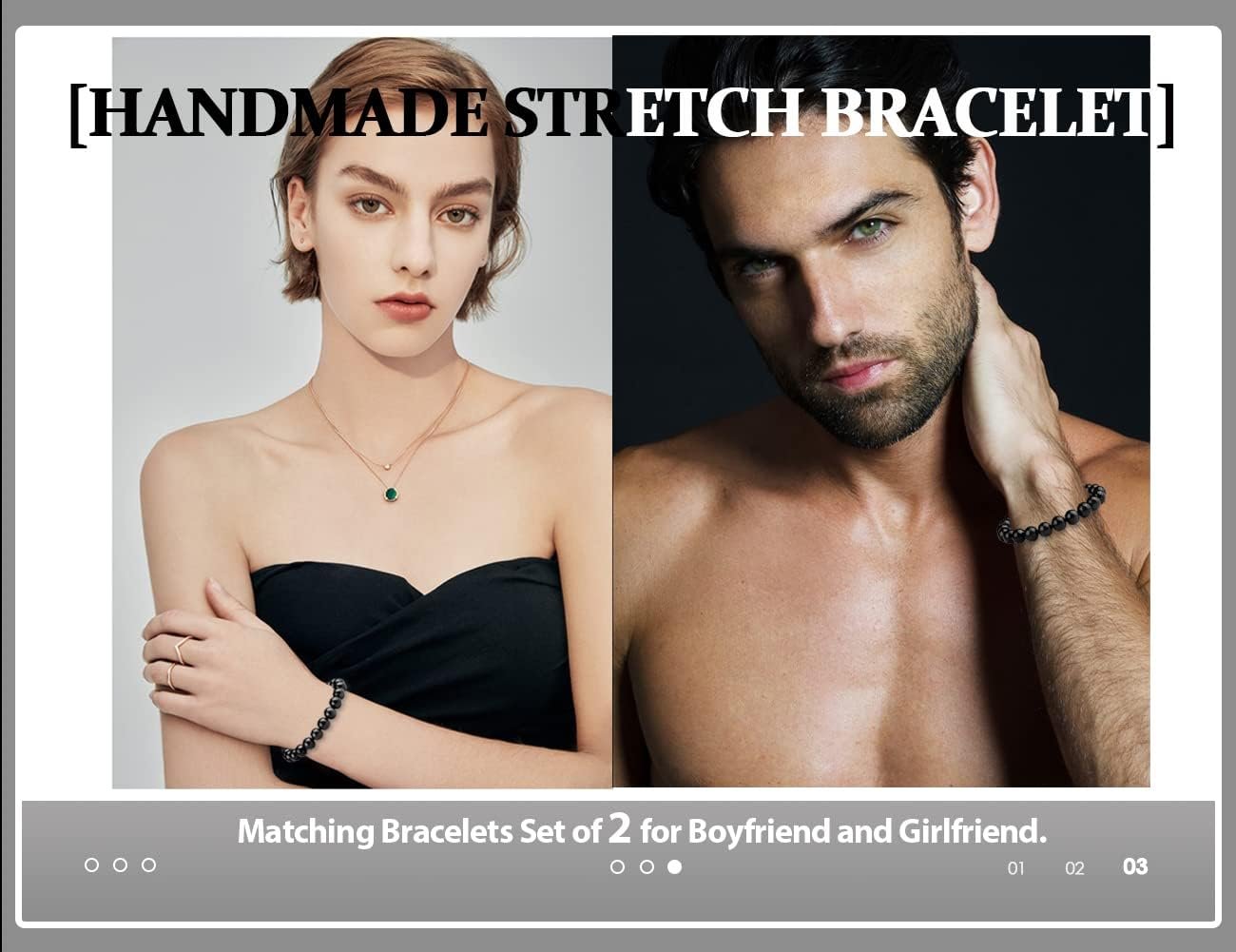 Beautiful set! And I was surprised to have it Beautifully gift wrapped boxed and in a cute little velvet sack plus a bounce little container of healing rocks. I bought this for my self but I’m saving it for a bonus gift for my son to give to his gf for them to have matching bracelets since there was 2 bracelets. So I ordered my self a single one. Absolutely satisfied with this purchase