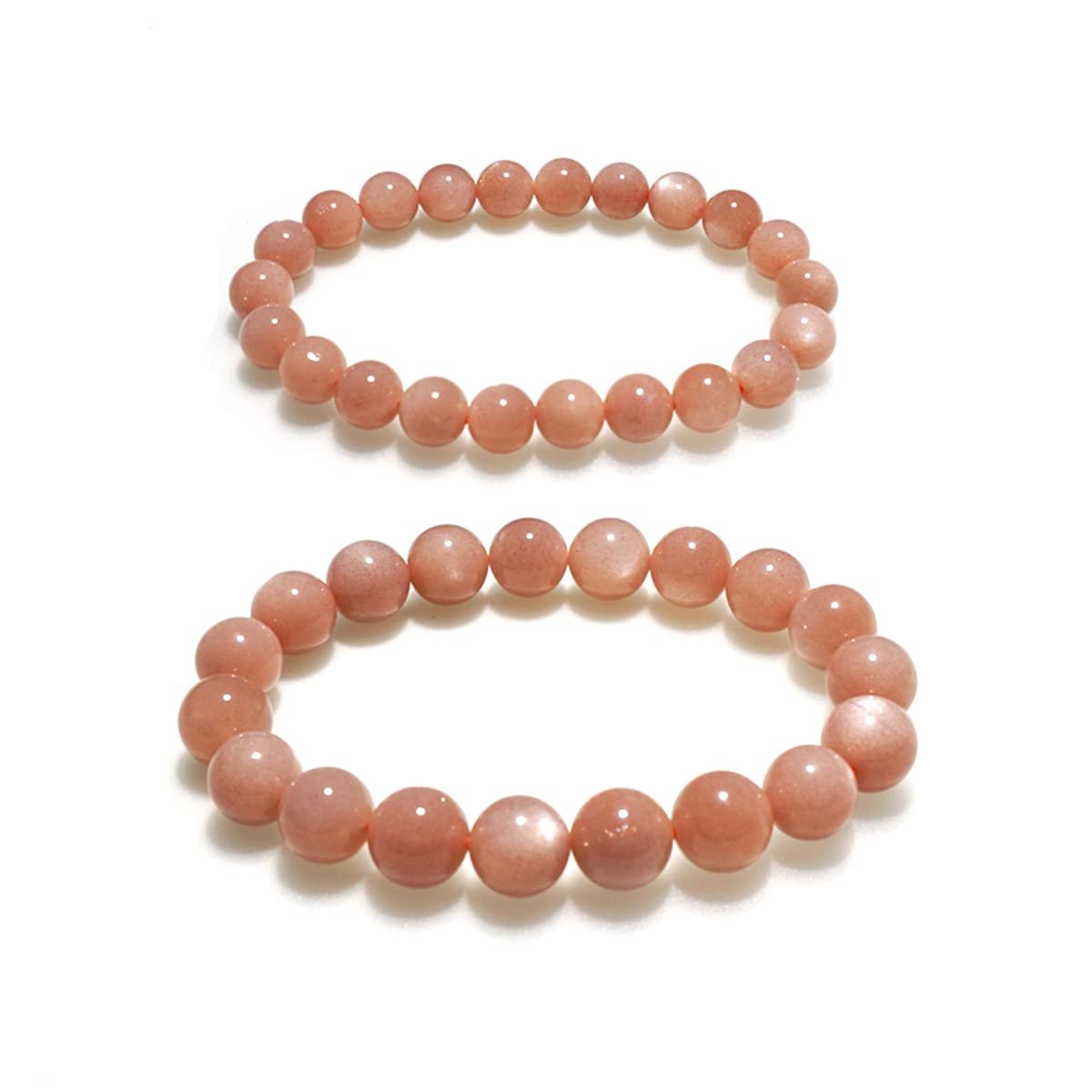 The golden obsidian is such a beautiful stone! As with any natural stone, we are careful not to drop or smash the bracelets, etc. I’m really glad the seller includes extra elastic cording and an extra bead for each bracelet, I needed to restring both so they’d fit more comfortably: Double the cord with about 2” offset. Use the beading wire to keep the stones from falling off and string both ends of cord through all the beads except 3 or 4 where you’ll string only the longer end. Loop the tail through the bent end where the wire is, removing the wire, and back through those last few beads, and tie in an overhand bow knot. Pull it tight, then tuck the knot into a bead to keep it secure. You should have 2 cords through each bead so the elastic is stronger and the bracelet is more durable. For a couples set, this is a good value for the price. We love the size of the beads.